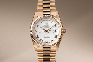 1989 Rolex Day Date 18238 White Roman Numeral Dial