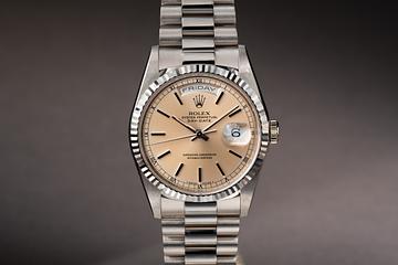 1991 Rolex 18k WG Day-Date 18239 Silver Dial with Papers