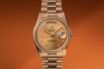 1993 Rolex 18K YG Diamond Day-Date 18348 Champagne Diamond Dial