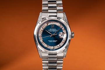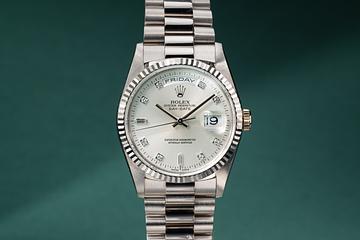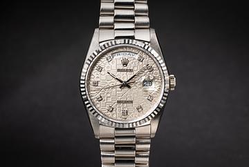 1989 Rolex 18K WG Day-Date 18239 Silver Jubilee Diamond Dial