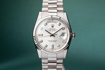 2000 Rolex 18k WG Day-Date 118239 Silver Diamond Dial
