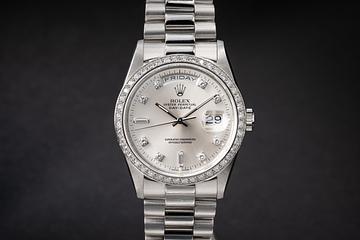 1991 Rolex Platinum Diamond Day-Date 18346 Silver Diamond Dial