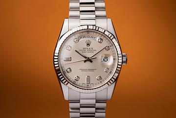 2000 Rolex 18K WG Day-Date 118239 Silver Diamond Dial with Box and Papers