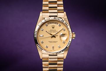 1986 Rolex 18K YG Day-Date 18038 Lemon Diamond Dial with Papers