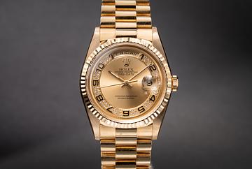 1990 Rolex 18K YG Day-Date 18238 Diamond Road Dial with Papers