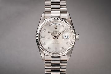 1988 Rolex 18K WG Day-Date 18039 Silver Diamond Dial