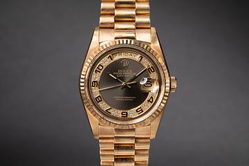 1989 Rolex 18K YG Day-Date 18238 with Carbon Grey and Diamond Dial