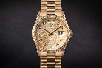 1991 Rolex 18K YG Diamond Encrusted Day-Date 18388 with Champagne Jubilee Diamond Dial