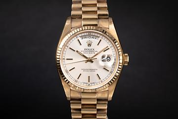 1979 Rolex 18k YG Day-Date 18038 with early Silver Double Swiss Transitional Dial
