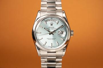 2006 Rolex Platinum Day-Date 118206 Glacier Blue Dial with Box and Papers