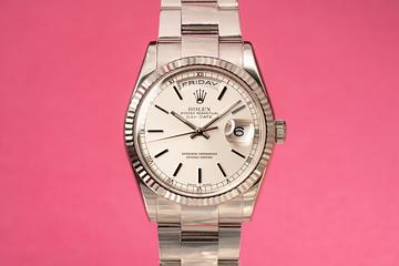 2000 Rolex 18K WG Day-Date 118239 Silver Dial