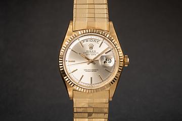 1966 Rolex 18K YG Day-Date 1803 Silver Dial with Gold Brick Bracelet