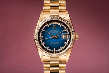1984 Rolex 18K YG Day-Date 18038 Blue Vignette String Dial