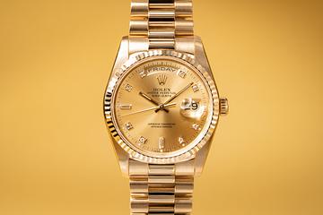 1991 Rolex 18K YG Day-Date 18238 Diamond Dial with Papers