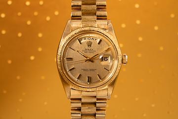 1969 Rolex 18k YG Gold Day-Date 1807 Bark Finish with Gold Linen Dial
