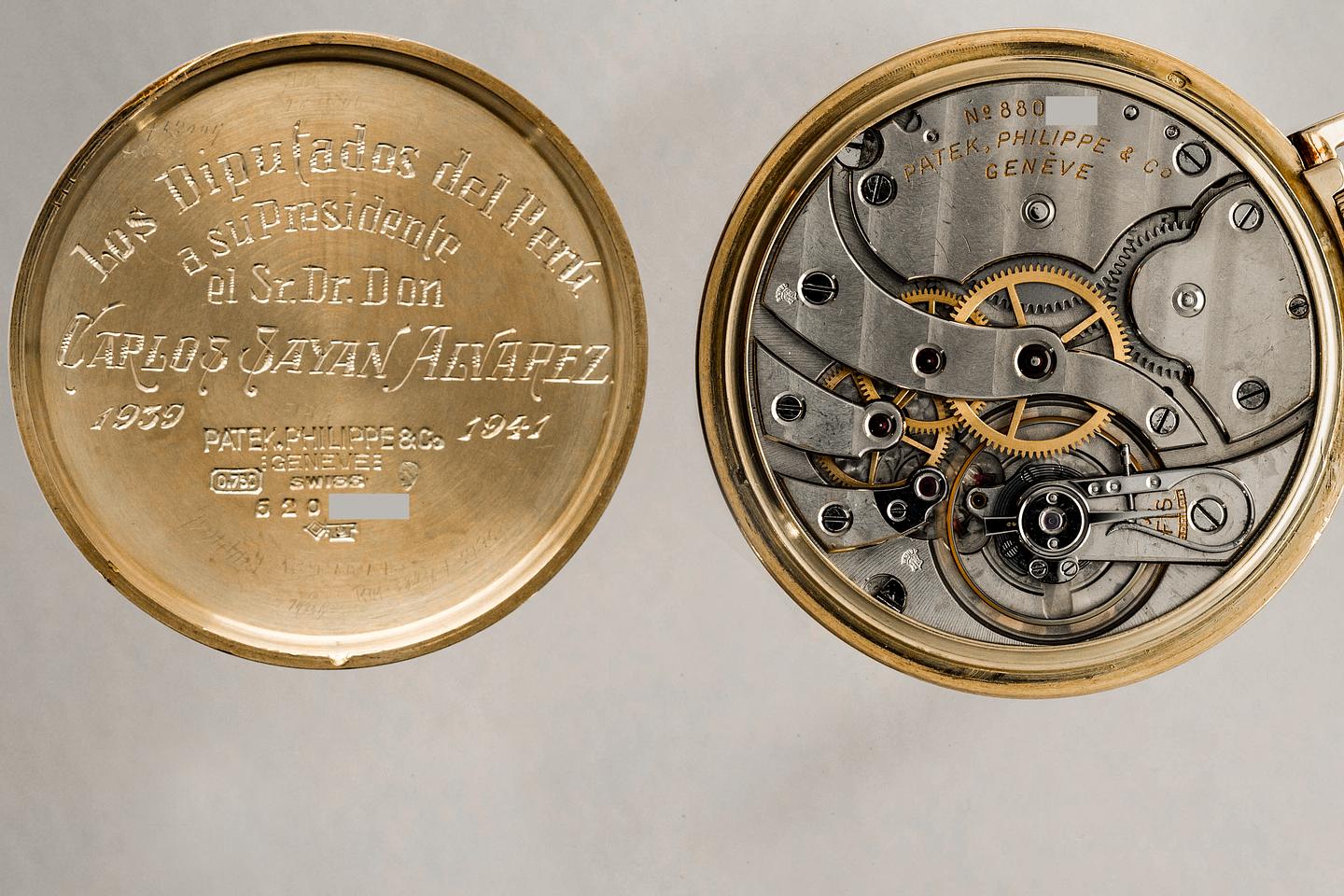 Notes This was once property of the Peruvian politician Carlos Alvarez who was an important Peruvian politician and magistrate with government positions such as constituent deputy from 1931 to 1936, Minister of Justice, Culture and Education in 1932, deputy for Chancay from 1939 to 1945 and president of its chamber in four legislative periods (1939-1940 and 1943-1944), and member and president of the Supreme Court of Justice from 1957 to 1958, this timepiece holds a special place within the history of Peru. Marking its lineage, this example’s caseback is engraved “LOS DIPUTADOS DEL PERÚ A SU PRESIDENTE EL SR. DR. DON CARLOS SAYÁN ALVAREZ 1939-1941” which translates to “THE DEPUTIES OF PERU TO ITS SR. Dr. DON CARLOS SAYÁN ALVAREZ 1939-1941”.