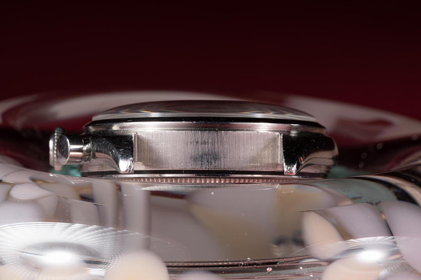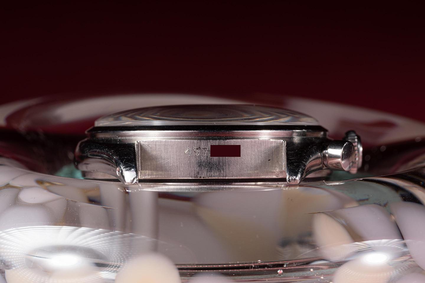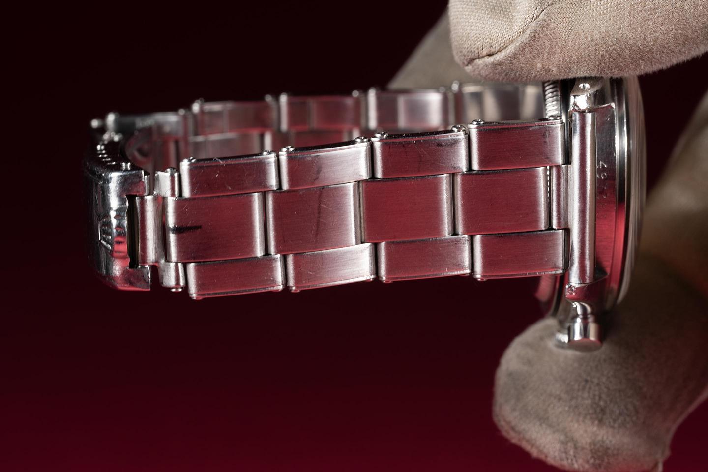 Bracelet: The 11 link stretch rivet bracelet is excellent showing only extremely light stretch for its age. The clasp is stamped with a 1958 date code.