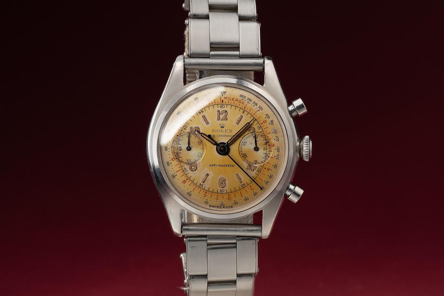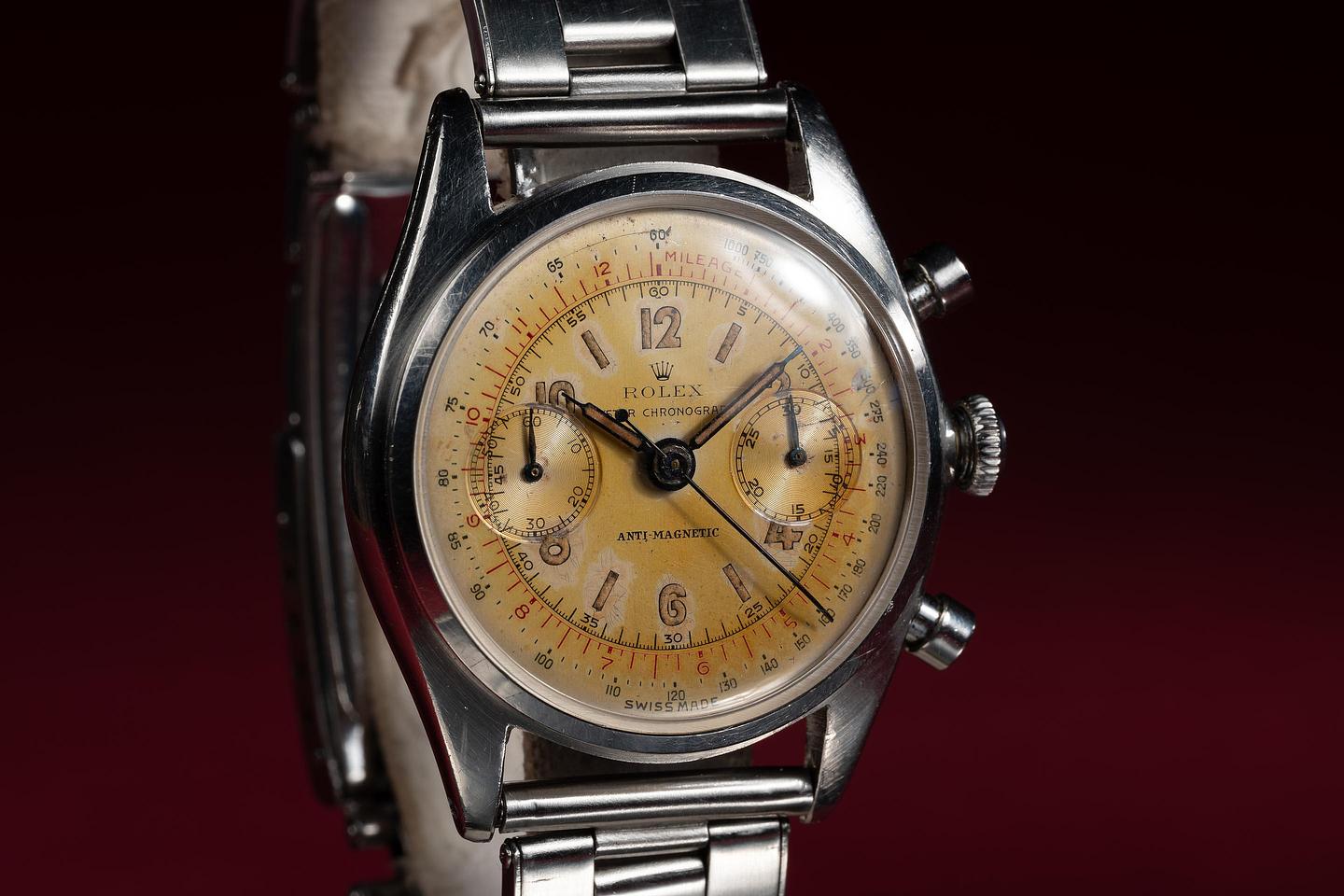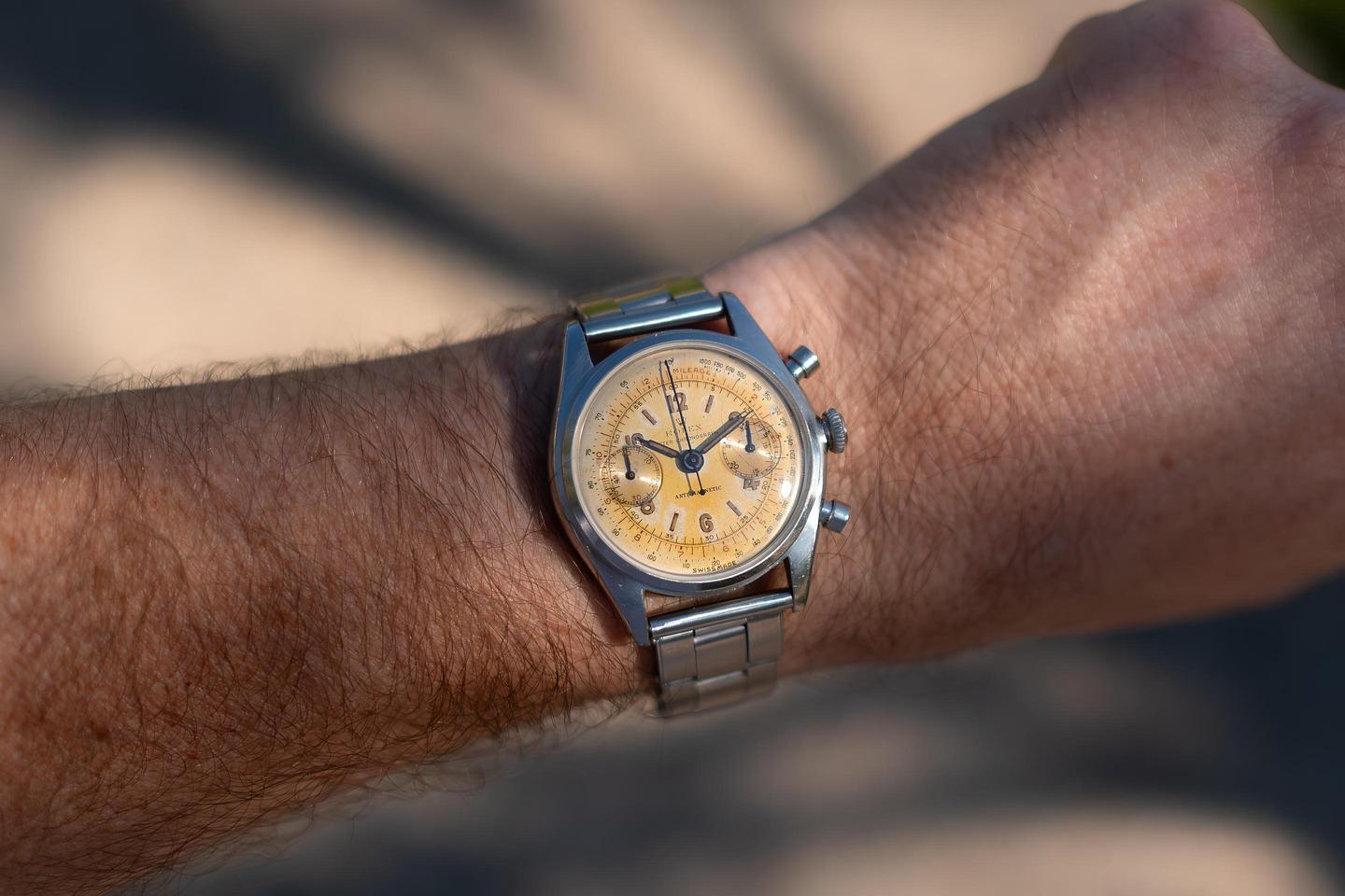Dial: The silver dial has aged to a warm silvery gold hue showing only light wear for its age. The lume has a ged to a warm sandy hue and the hands match perfectly.