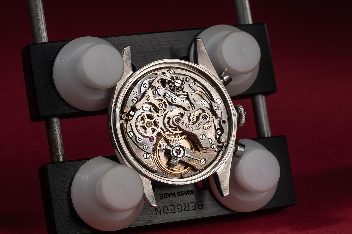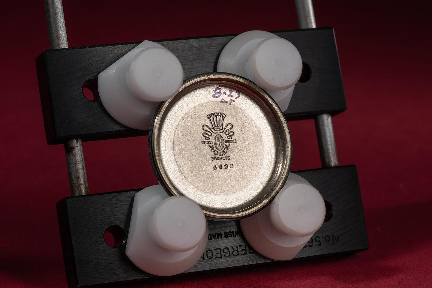 Bracelet: The 11 link stretch rivet bracelet is excellent showing only extremely light stretch for its age. The clasp is stamped with a 1958 date code.