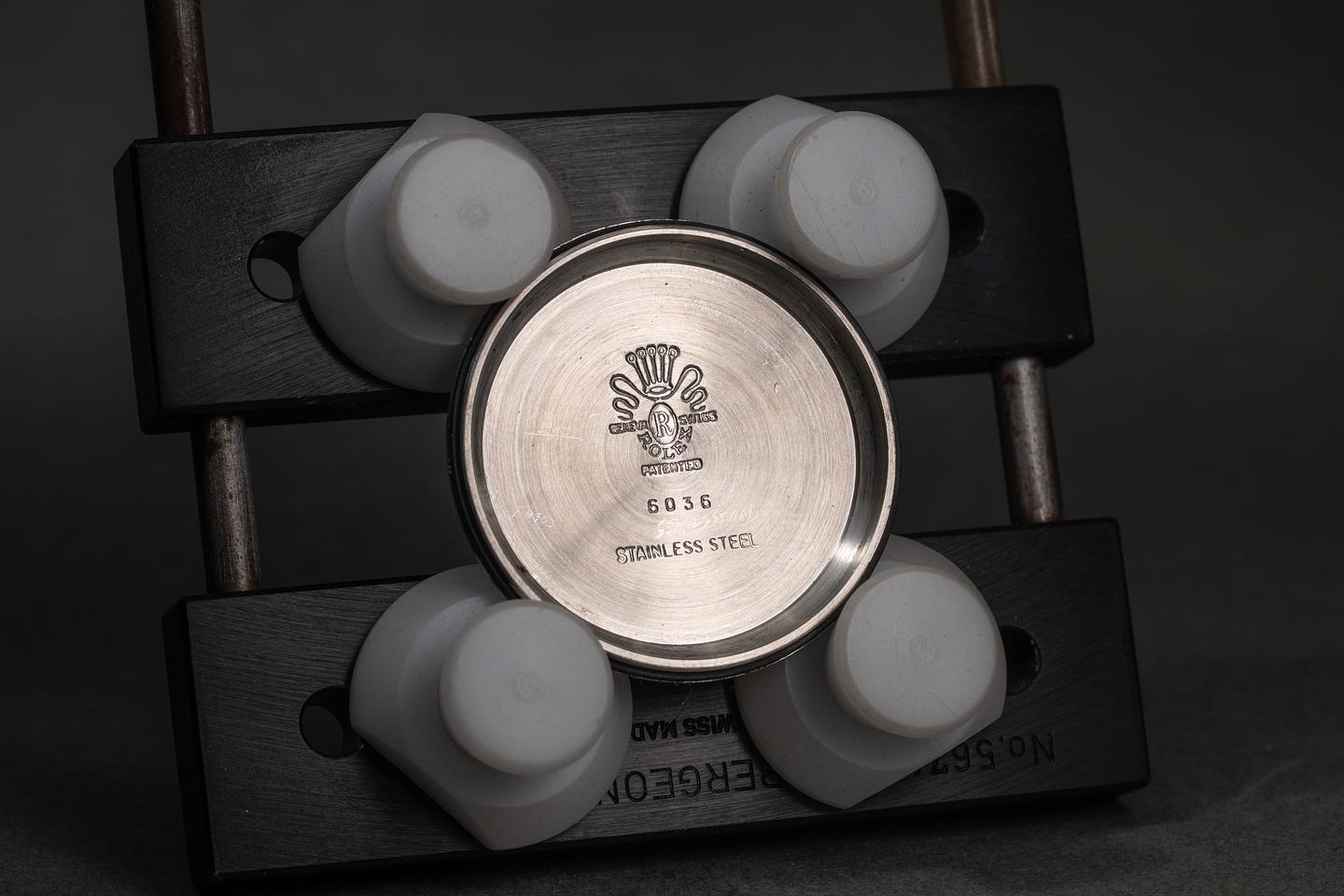 Case: The 36mm stainless steel case is excelent showing only light wear from use. The smooth stainless steel bezel is also in excellent condition, showing only light wear from use.