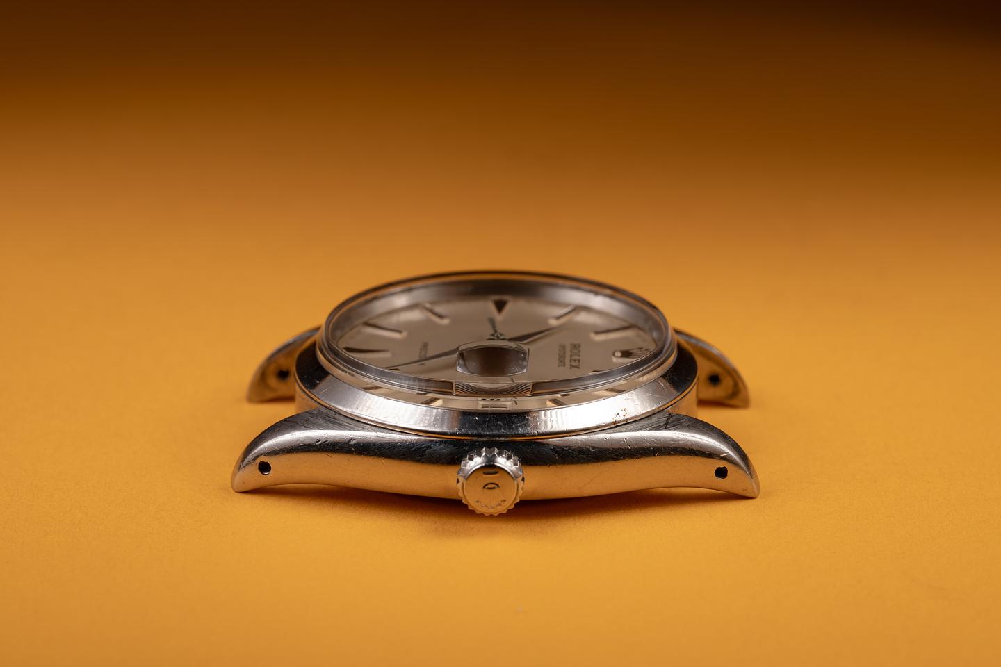 Bracelet: The 12-link Swiss- rivet Oyster bracelet is excellent, showing only light stretch for its age. The clasp is stamped with a 1968 date code.