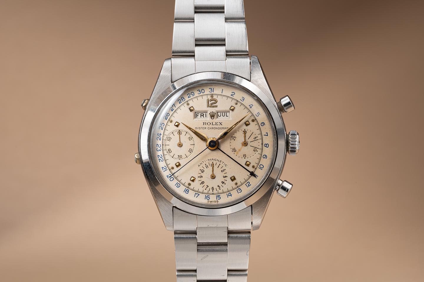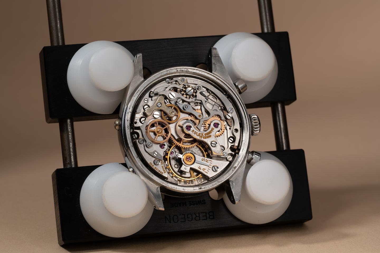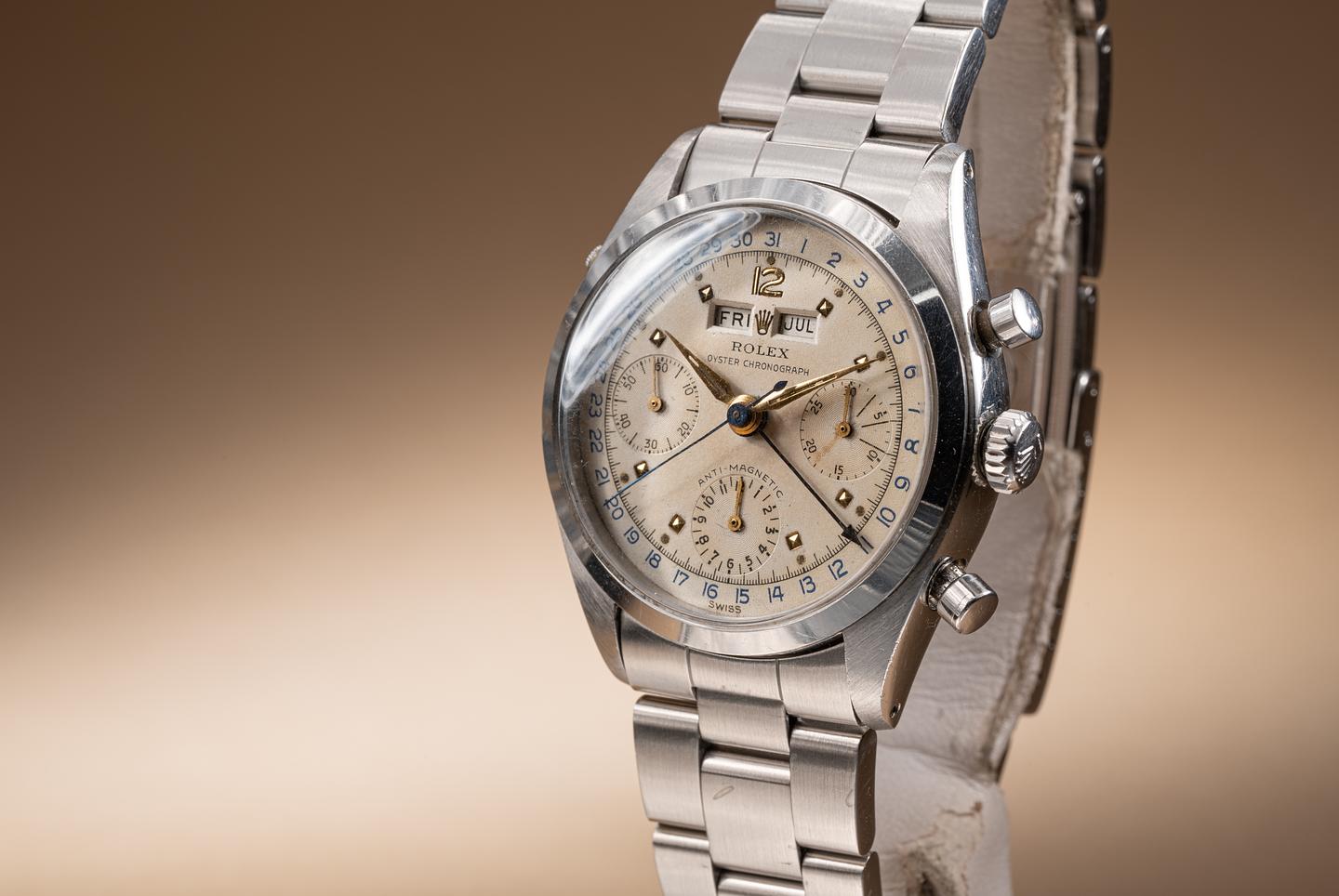 Dial: The pearlescent white dial is excellent showing some light wear for its age. The lume plots have mostly disintegrated from age and the remaining lume has aged to a dark sage hue. The gold dauphine hands are also missing a portion of their lume with the remaining lume matching that on the dial.