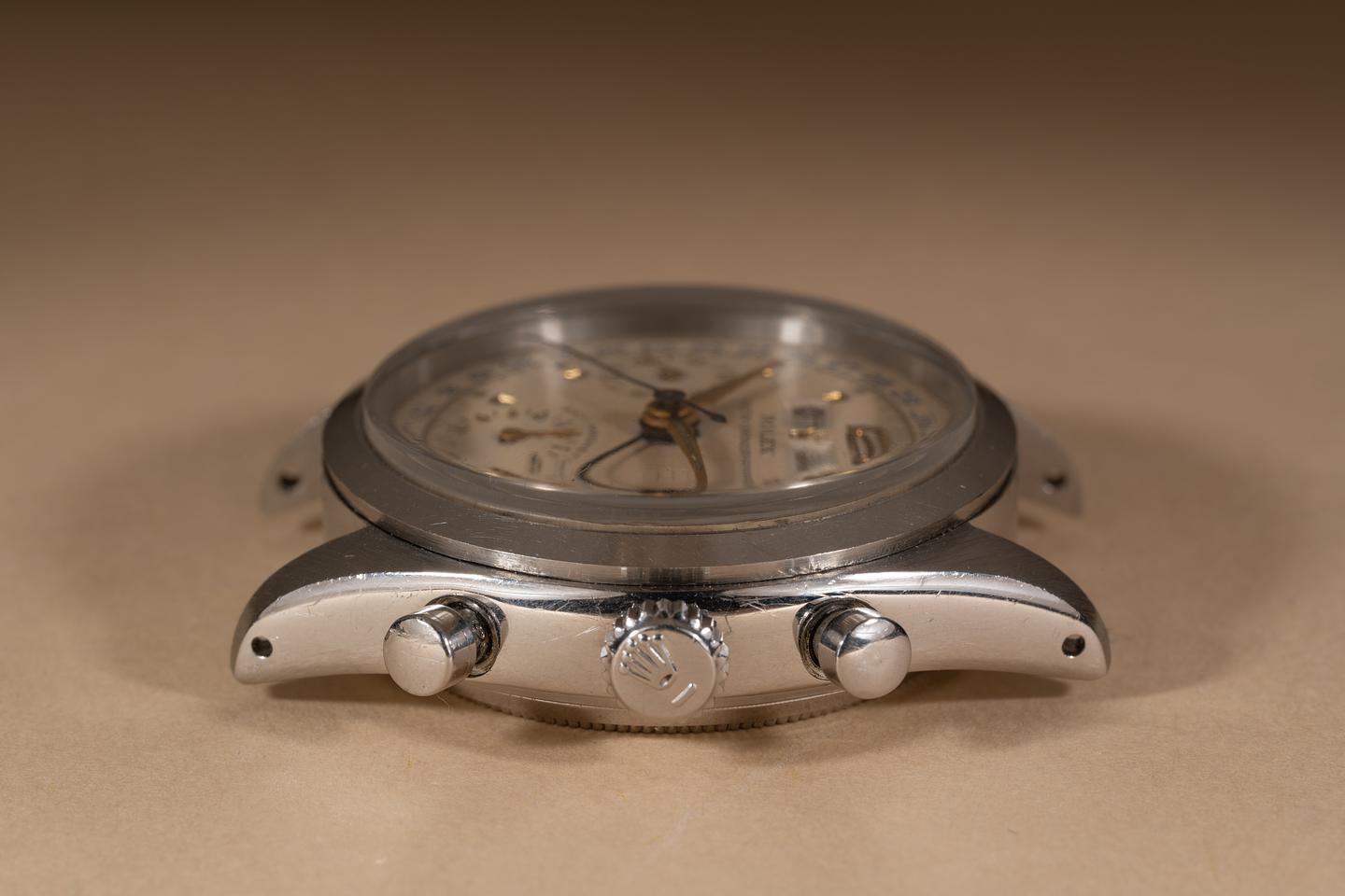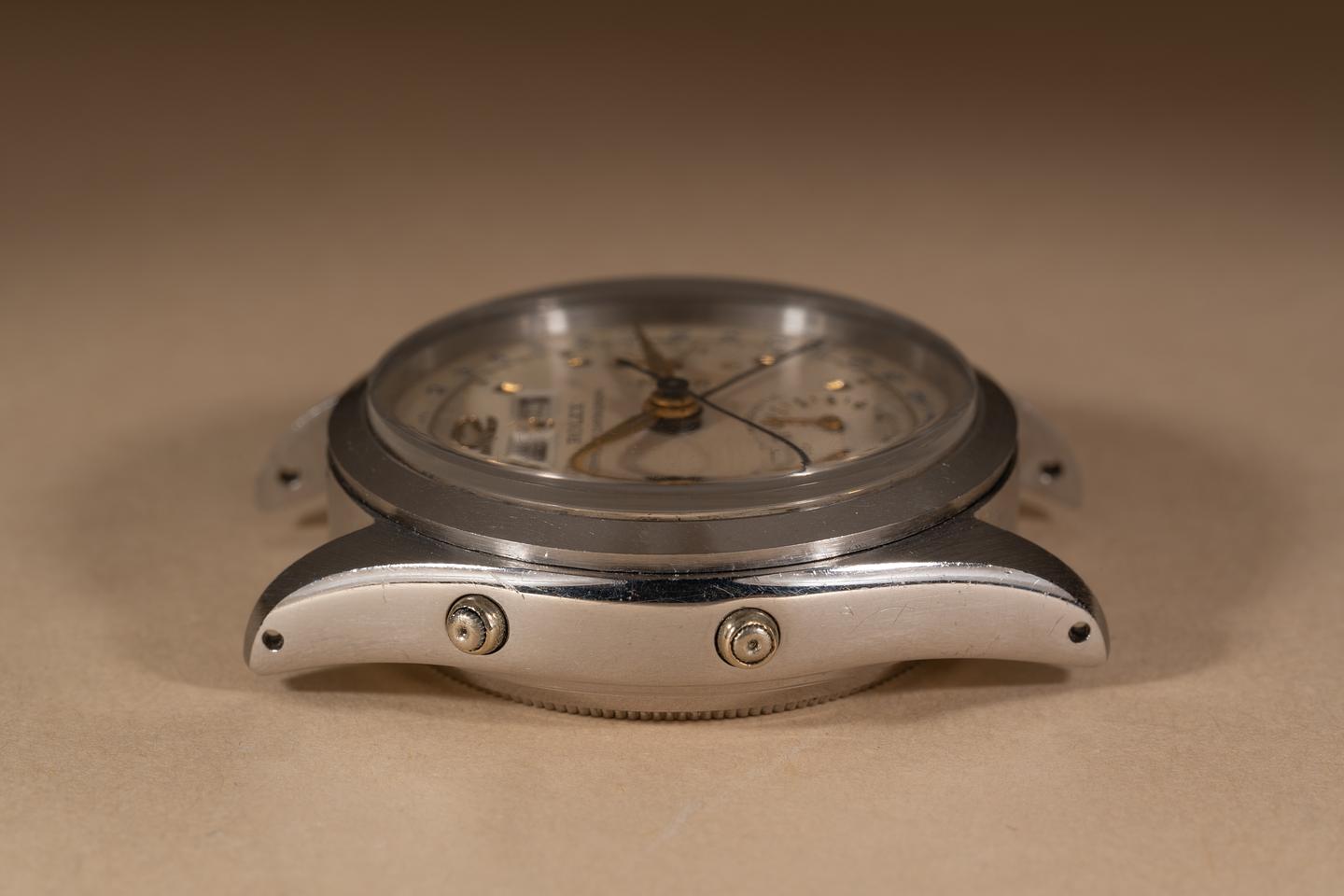 Case: The sharp, thick, and even case is excellent showing only very light wear from use. The smooth stainless bezel is also in excellent condition showing only very light wear from use.