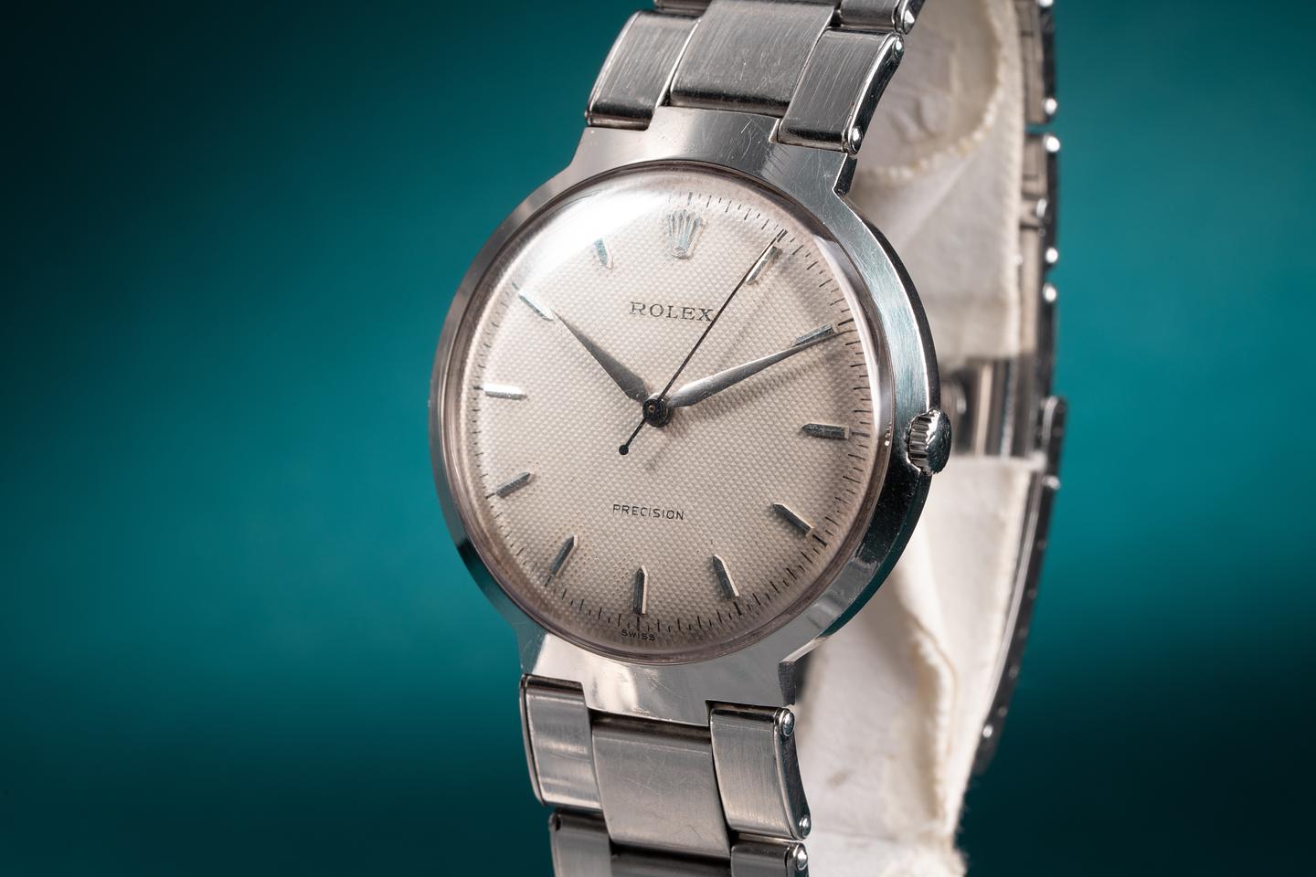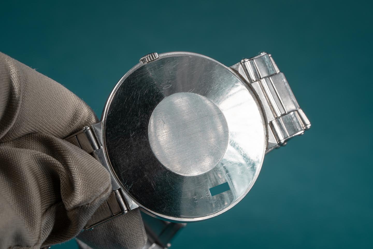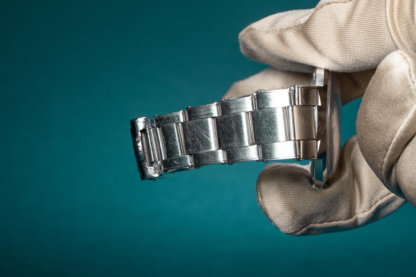 Bracelet: The 12 link Swiss rivet bracelet is excellent showing some light stretch for its age. The clasp is stamped with a 1966 date code.