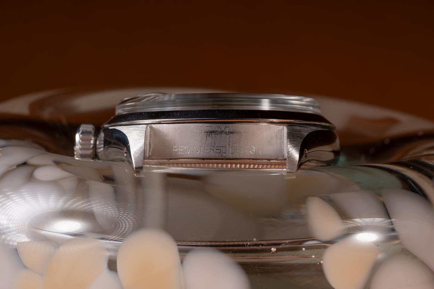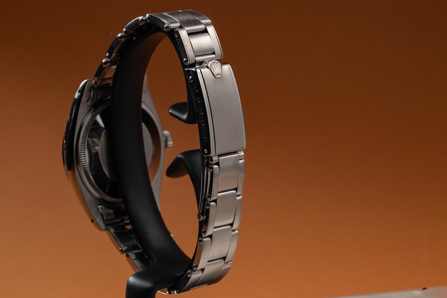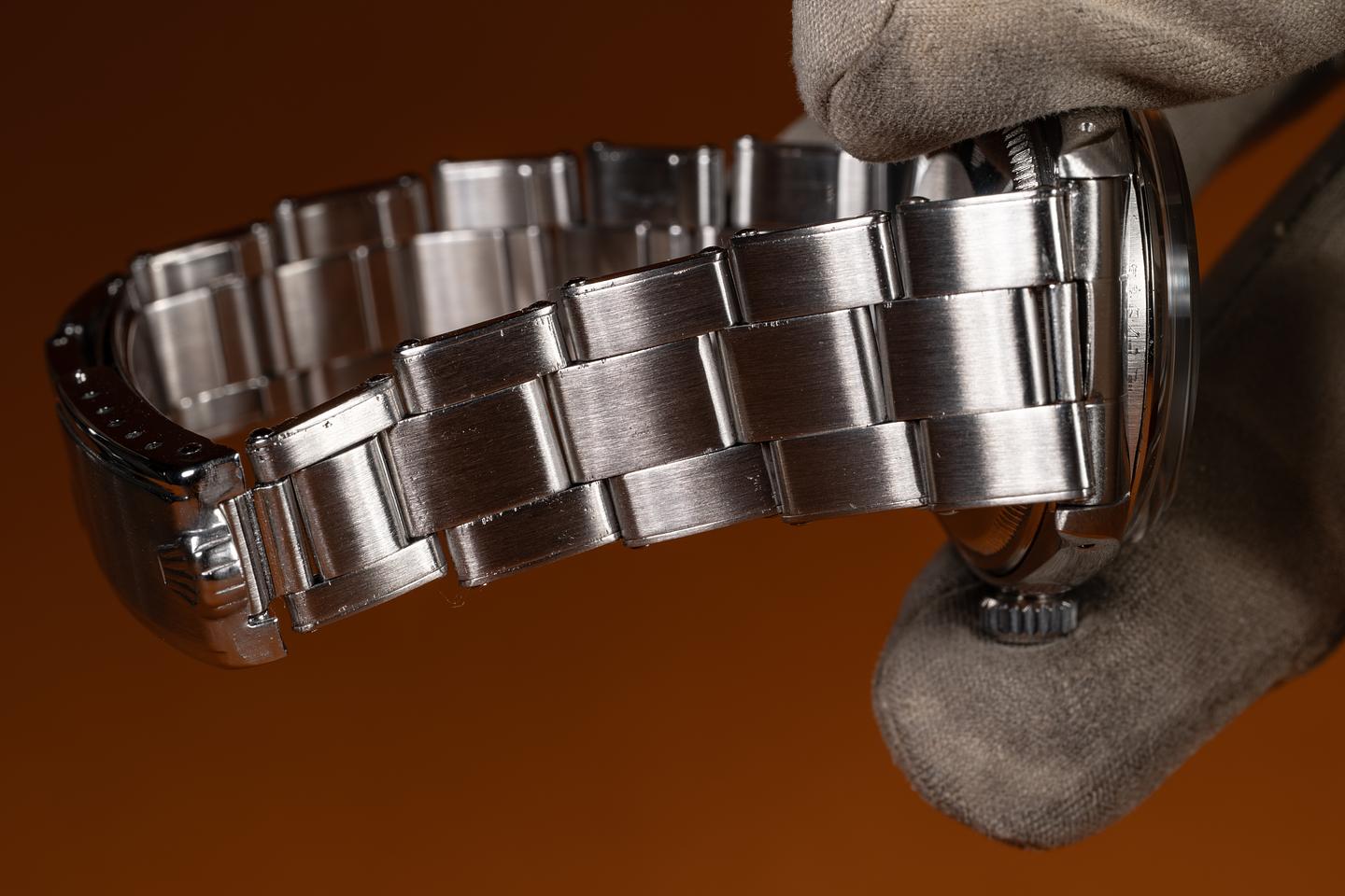 Bracelet: The 12-link Swiss rivet bracelet is excellent, showing only very light stretch for its age. The clasp is stamped with a 1962 date code.