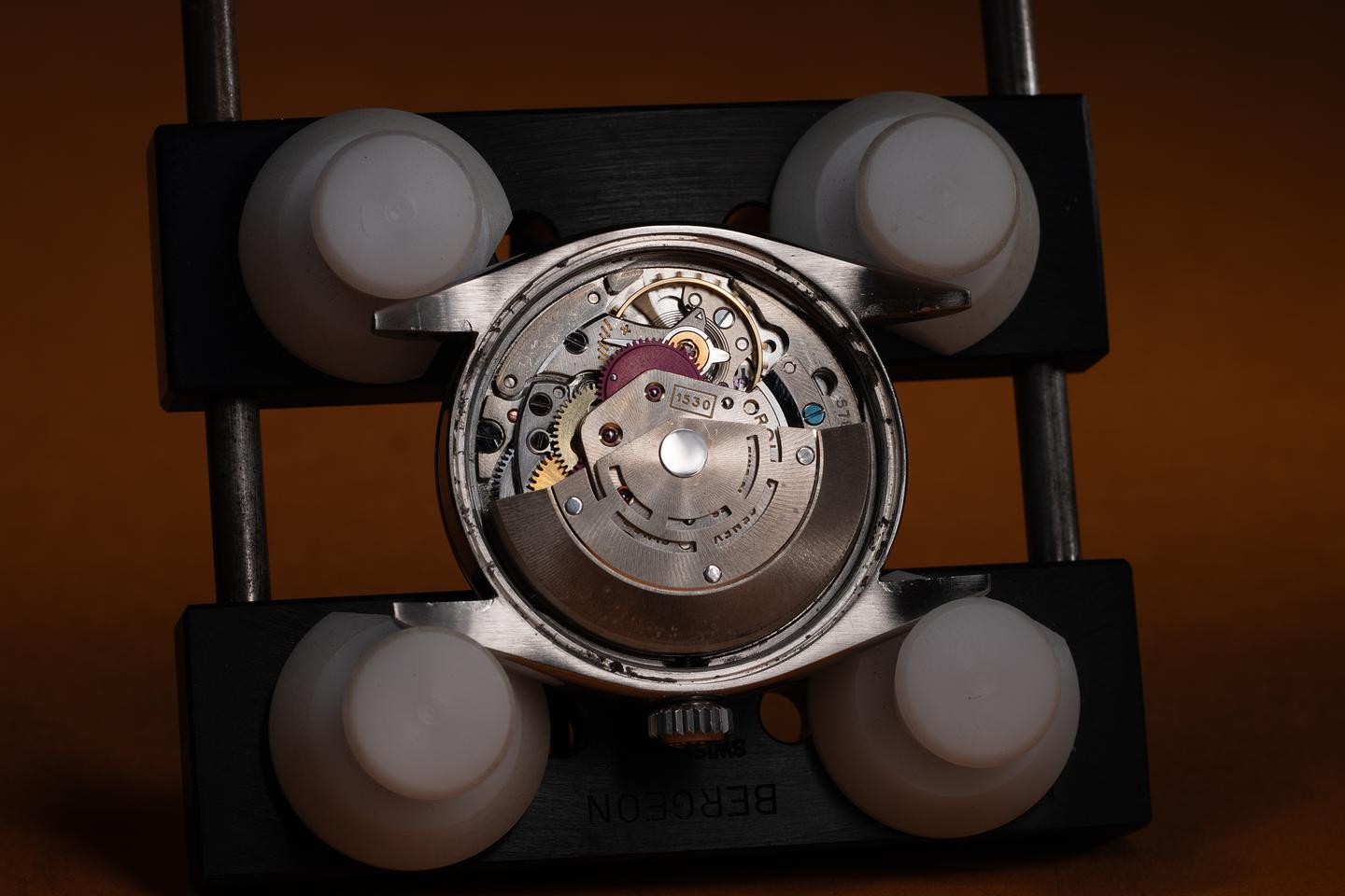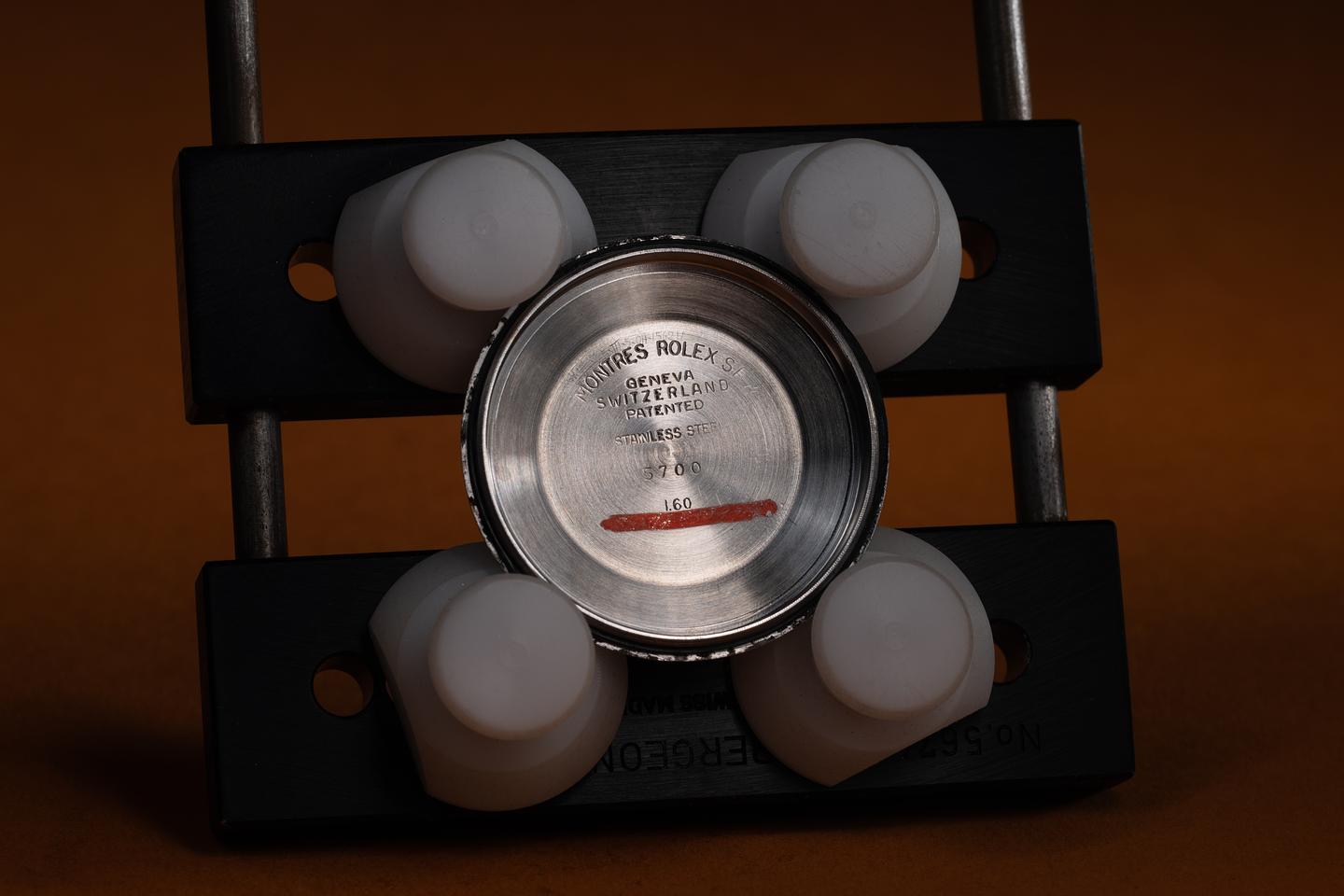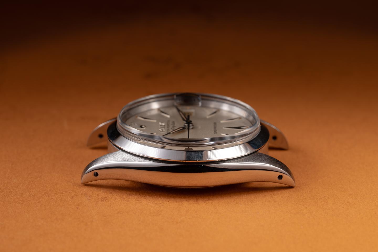 Bracelet: The 12-link Swiss rivet bracelet is excellent, showing only very light stretch for its age. The clasp is stamped with a 1962 date code.