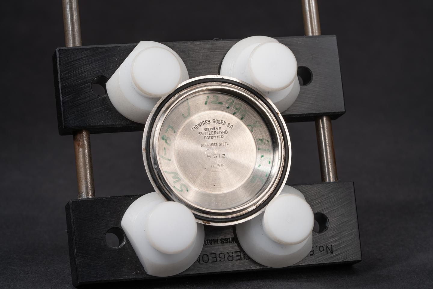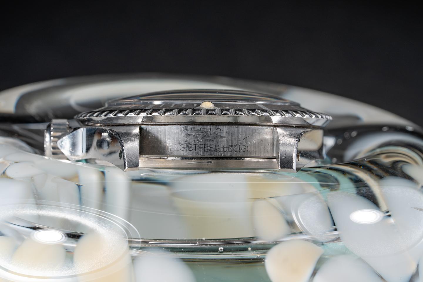 Bracelet: The 12 link USA rivet bracelet is excellent showing only very light stretch for its age. The clasp is stamped with a 1966 date code.