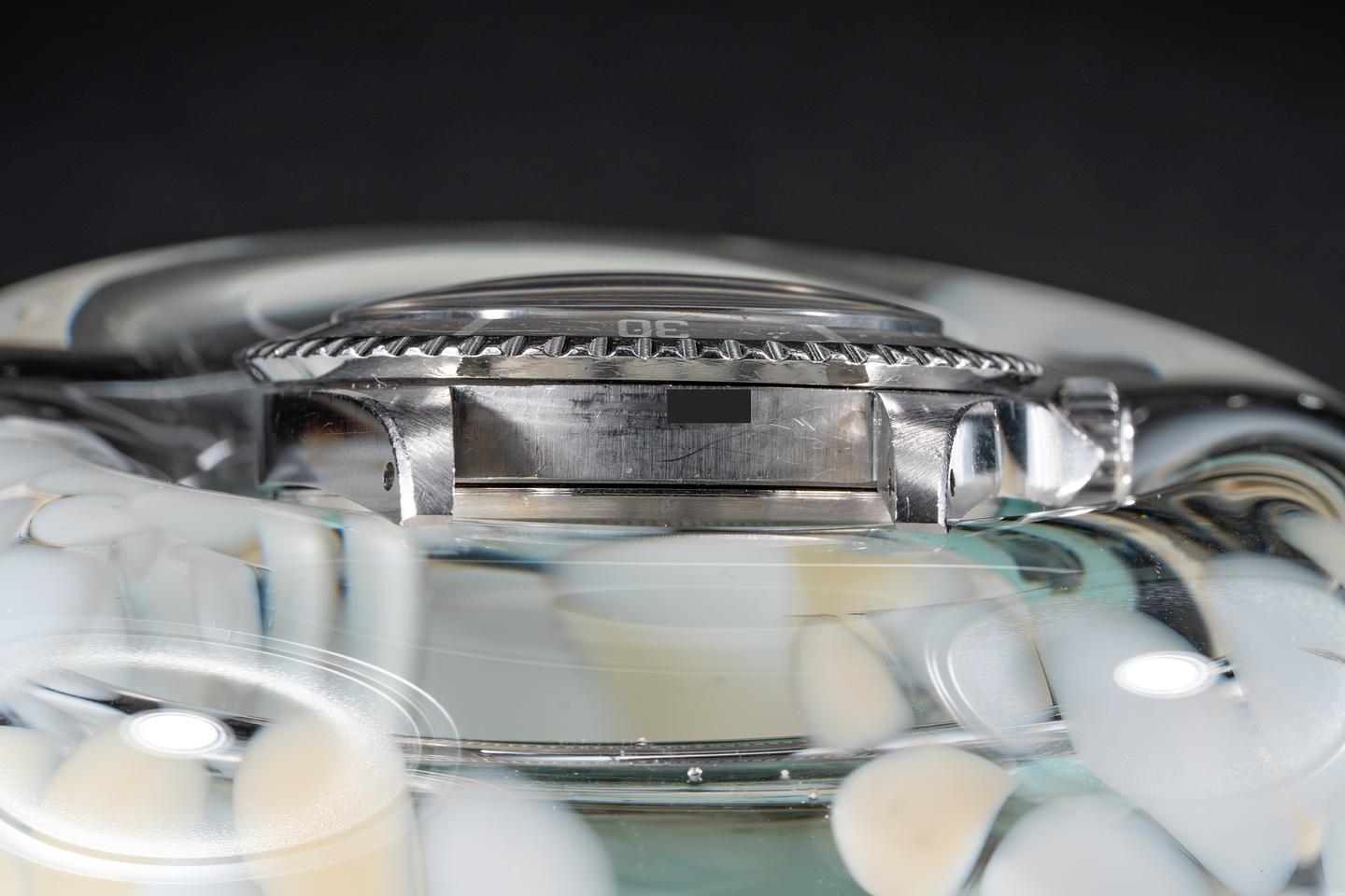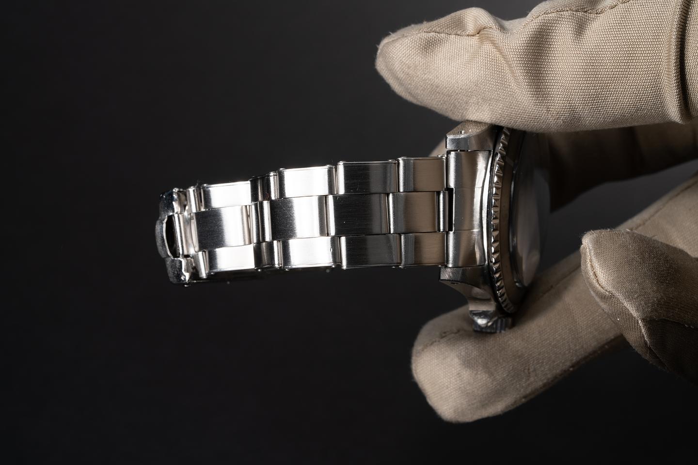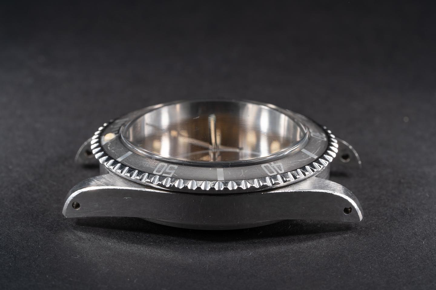 Case: The recently polished Pointed crown guard case is excellent showing sharp prominent bevels and only very light wear from use. The bezel insert has faded to a light silver grey and shows only very light wear from use.