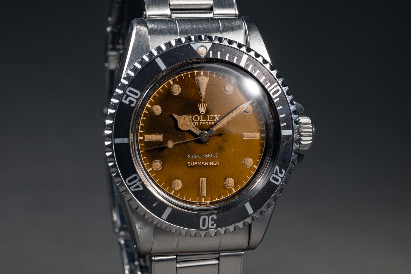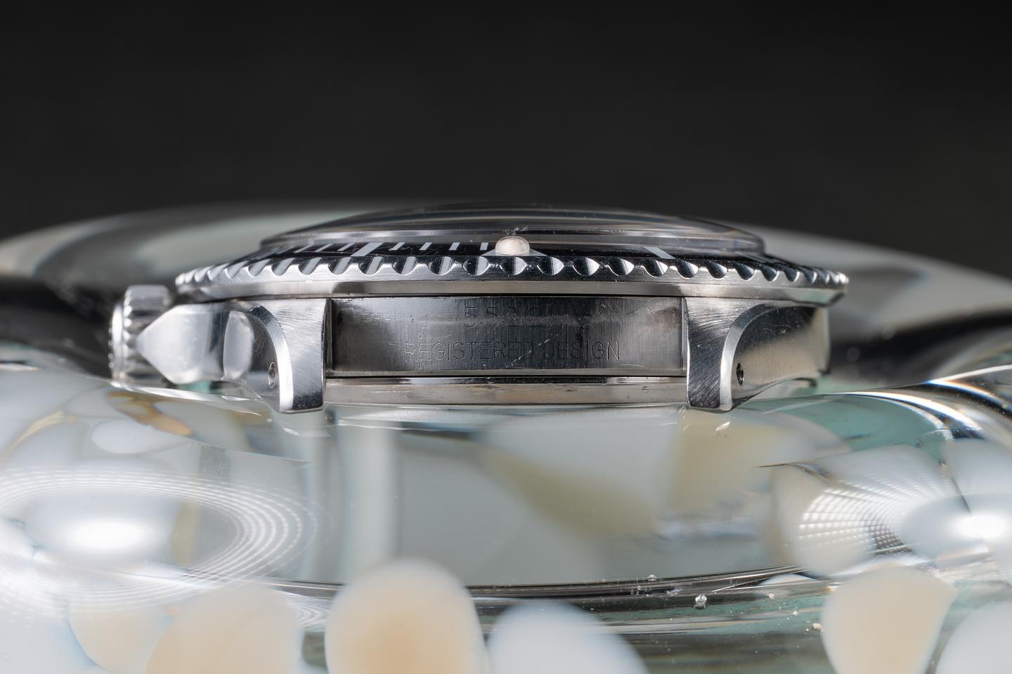 Case: The "Eagle Beak" pointed crown guard case is excellent, showing wide, sharp, prominent bevels and only very light wear from use. The bezel insert is also in excellent condition and has faded to a silver-grey tone.