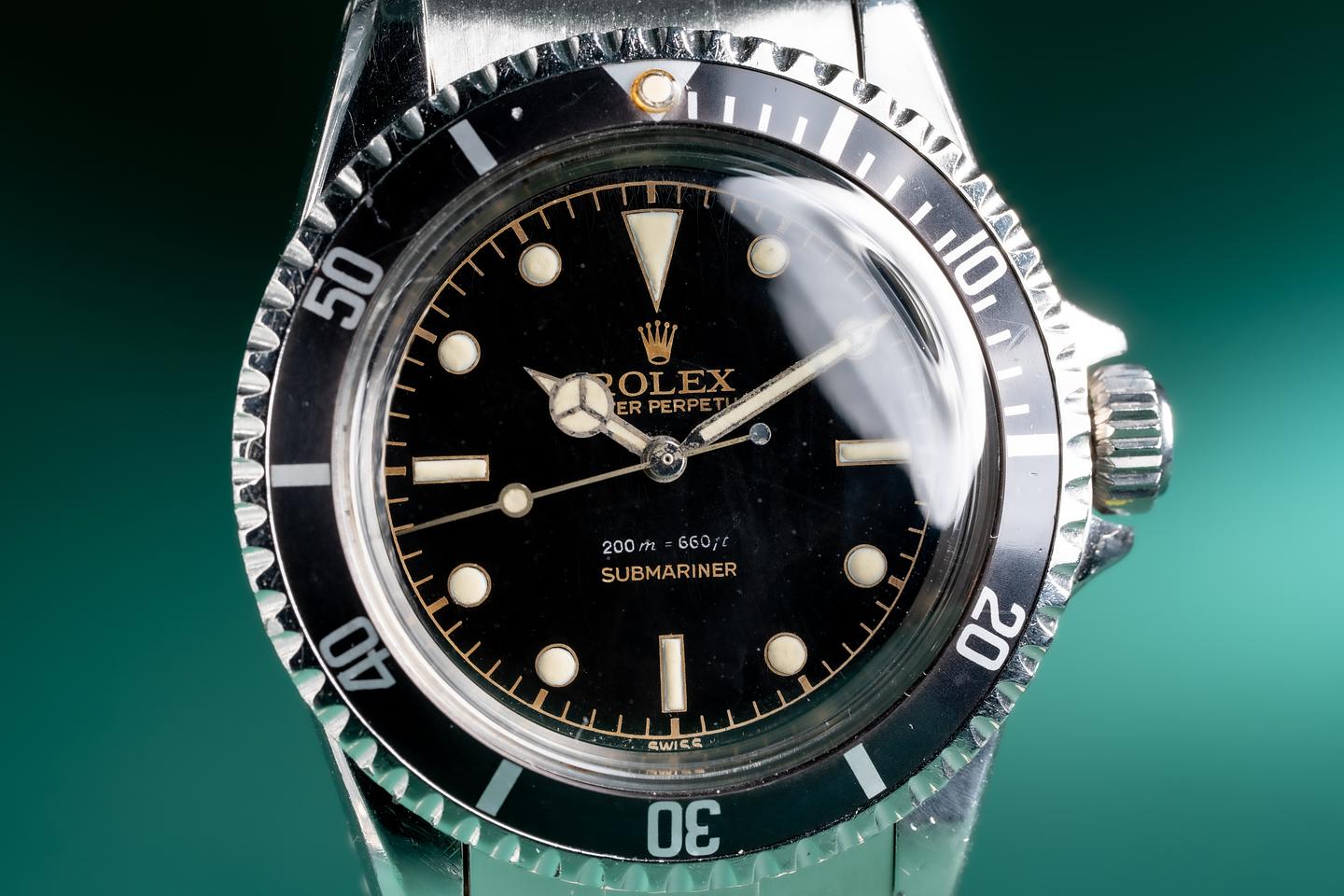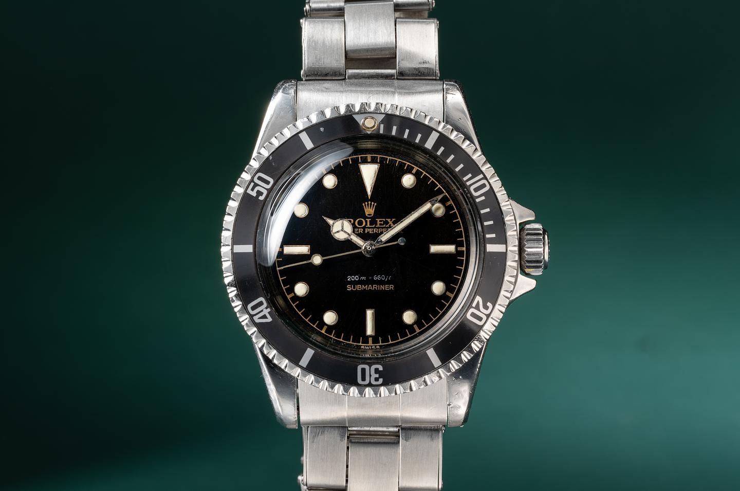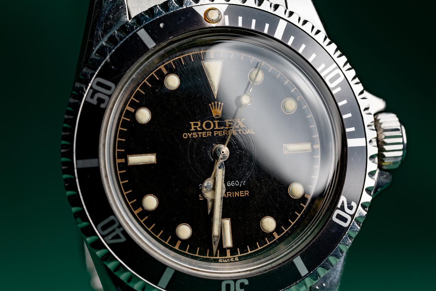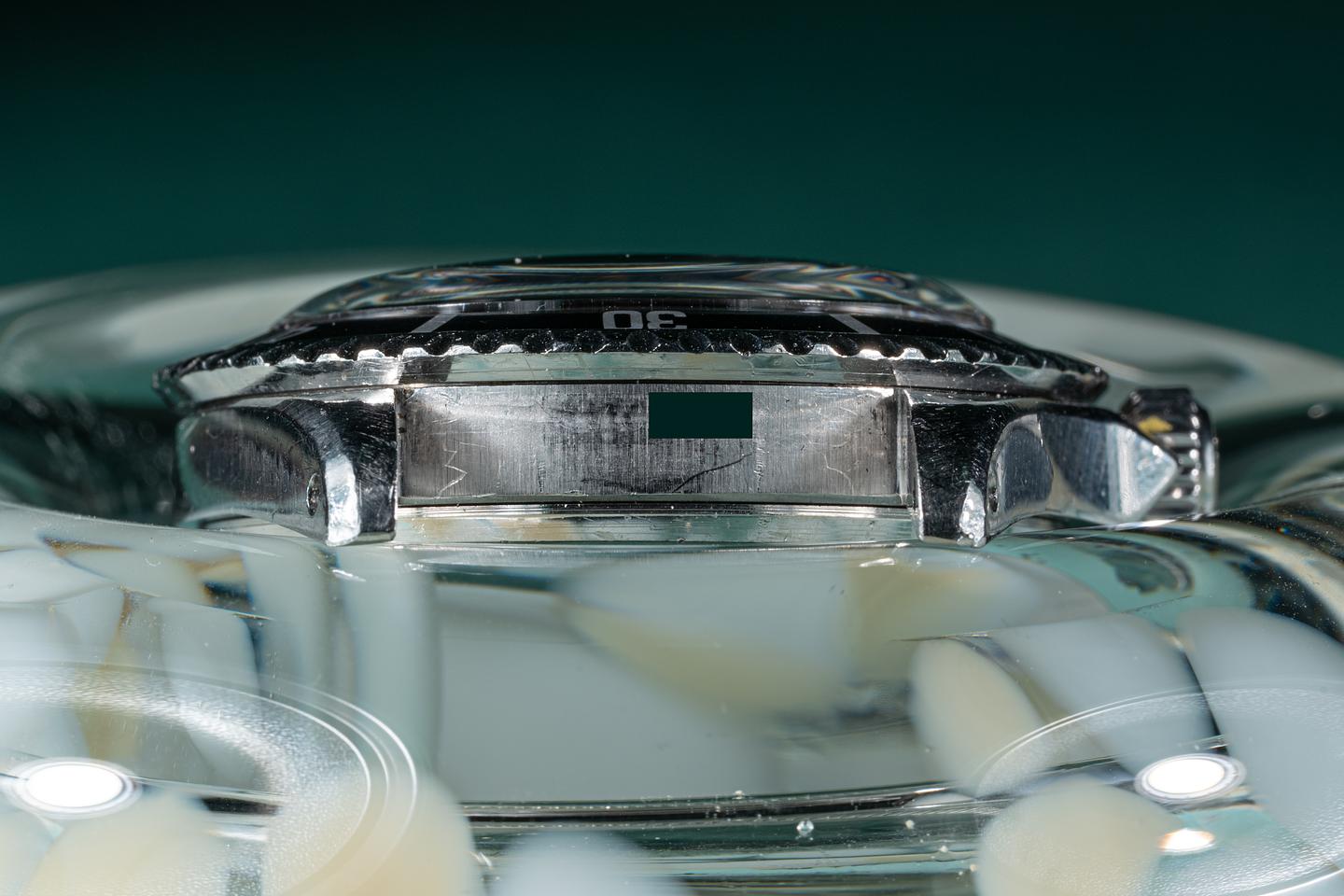 Case: The thick and even case is excellent showing wide prominent factory bevels and average wear from use. The watch has a bright sleeve polished finish. The fat font bezel insert is also in excellent condition showing a very subtle fade to the inner portion of the insert.