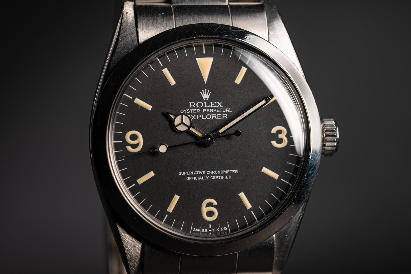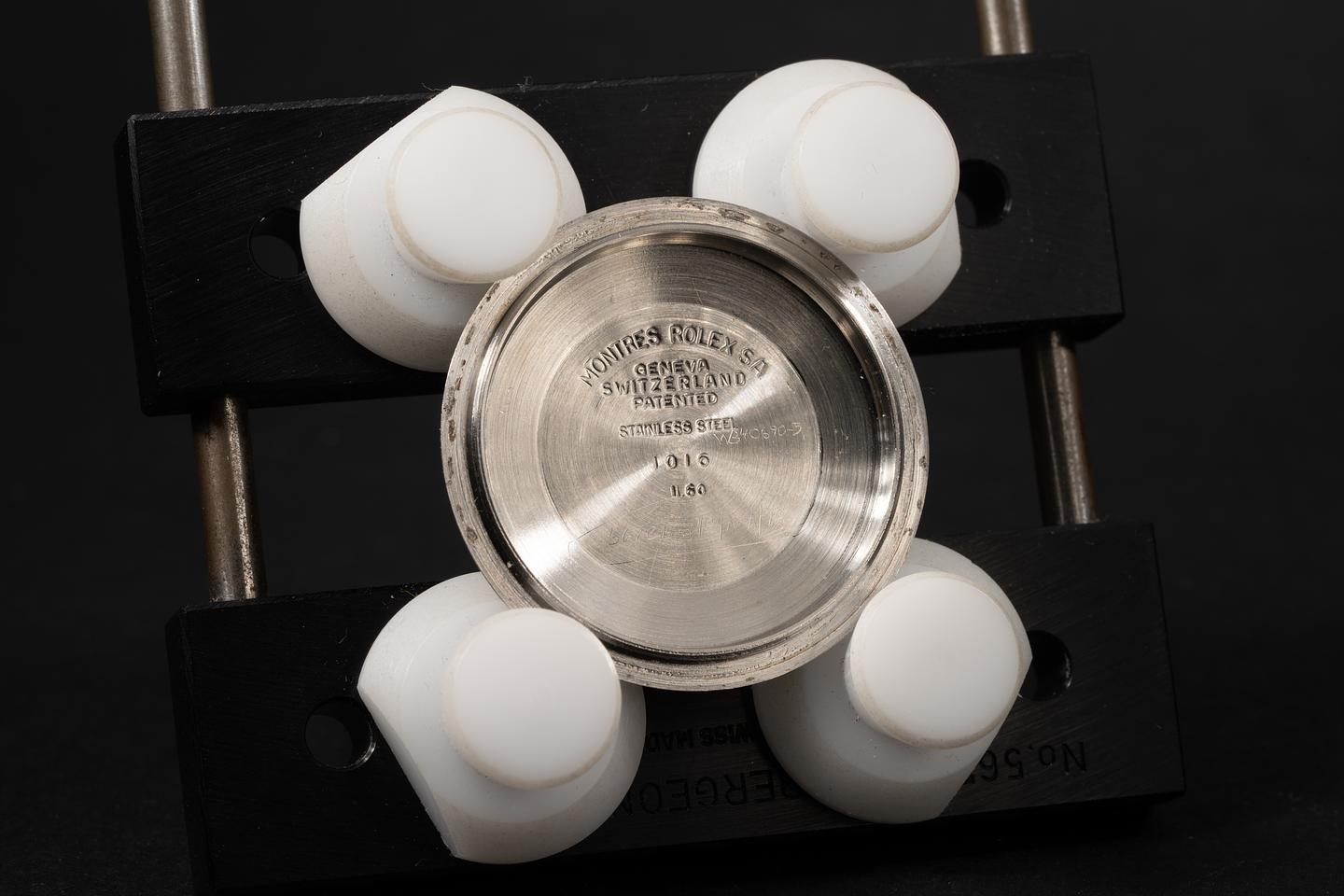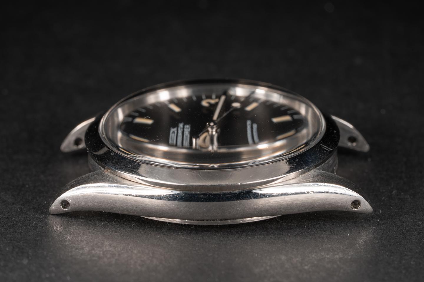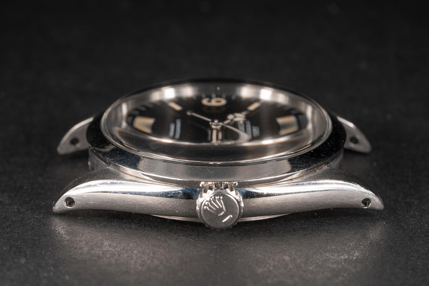 Dial: The newer matte dial is excellent showing overall very light wear for its age. The dial was mostly likely installed at a Rolex service at some point. There is one small spot just to the left of the word oyster. The lume has aged to a warm creamy hue and the hands have aged slightly lighter than the dial.