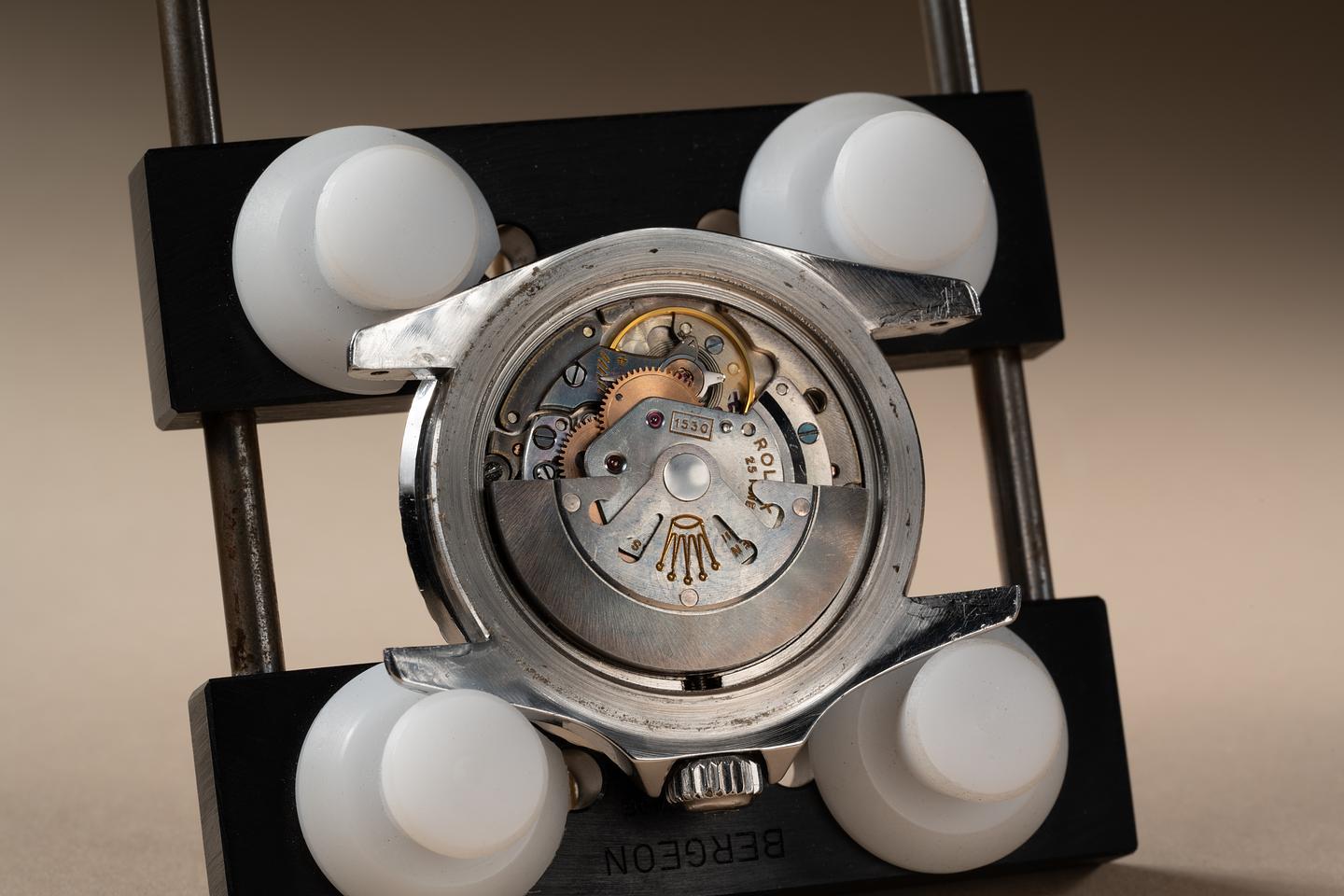 Bracelet: The 12 link Swiss rivet bracelet is excellent showing only very light stretch for its age. The clasp is stamped with a 1964 date code.