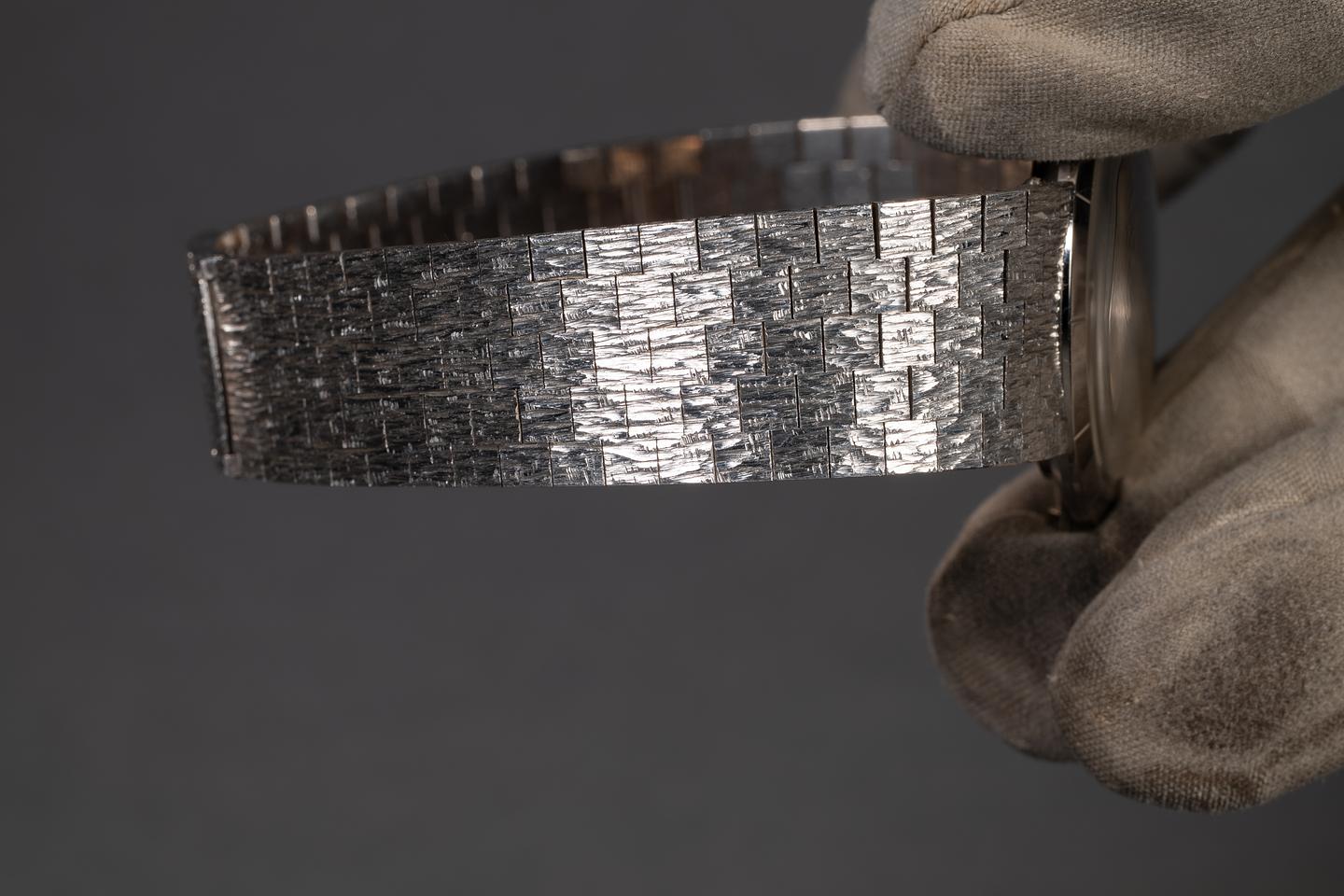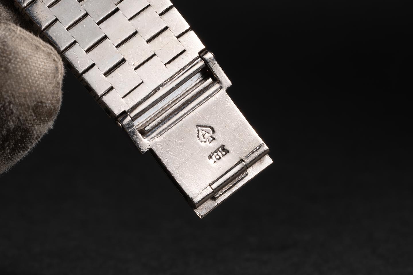 Bracelet: The aftermarket 18K white gold mesh bracelet is excellent, showing no perceivable stretch. The bracelet is beautifully made with an ace of spades maker mark.