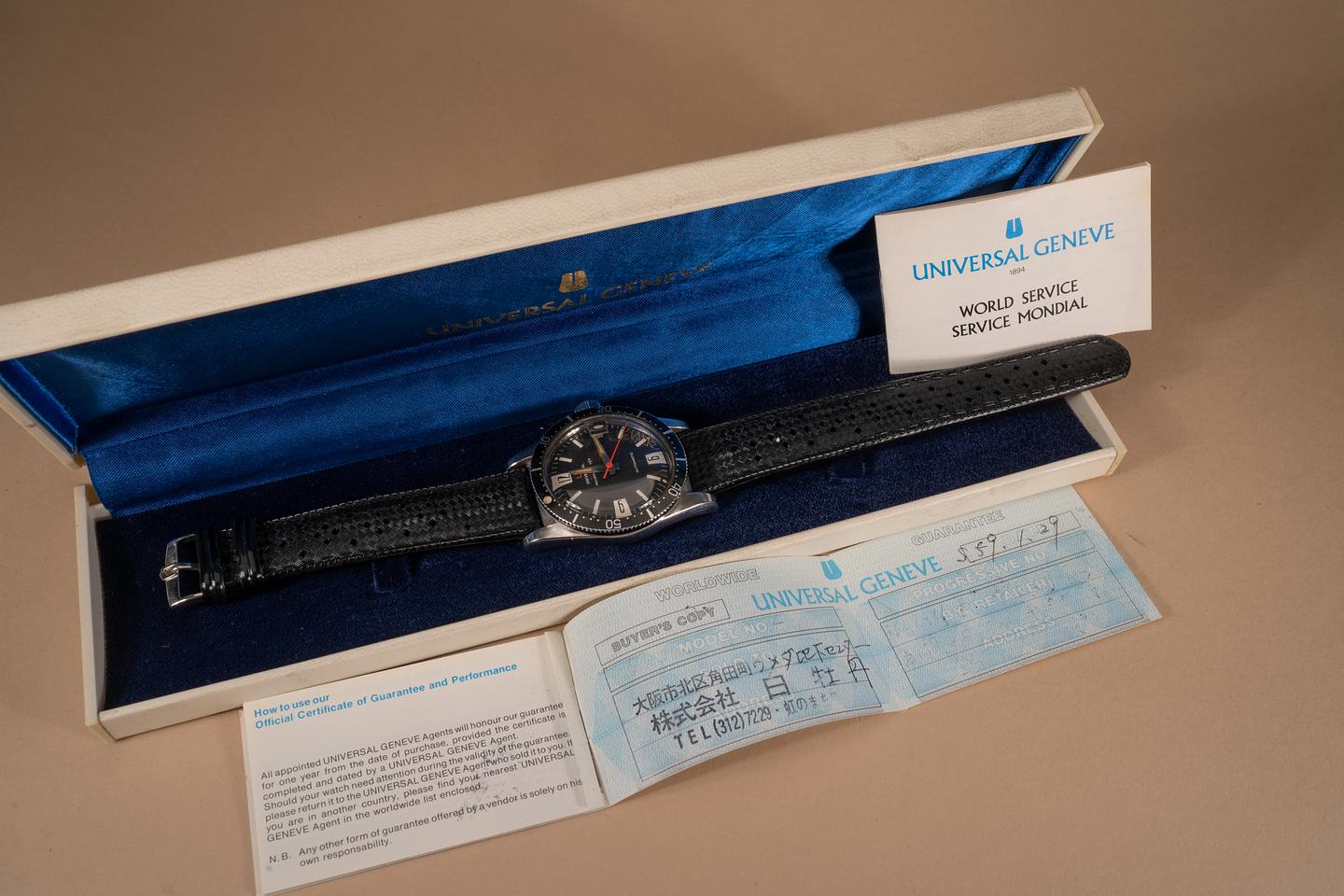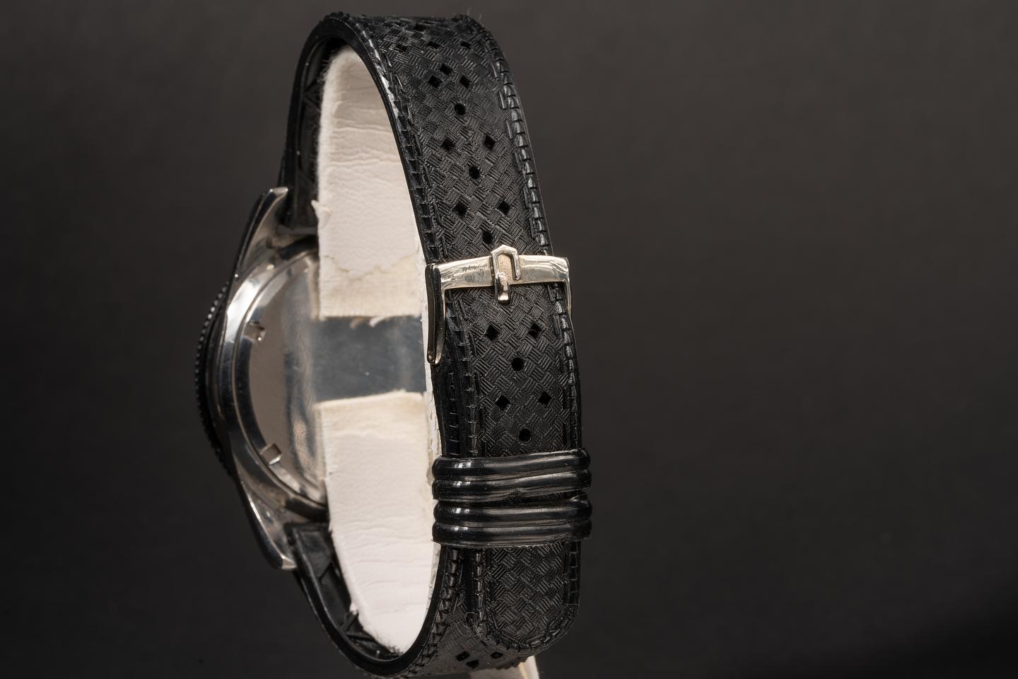 Bracelet: Excellent black rubber tropical strap with UG buckle.