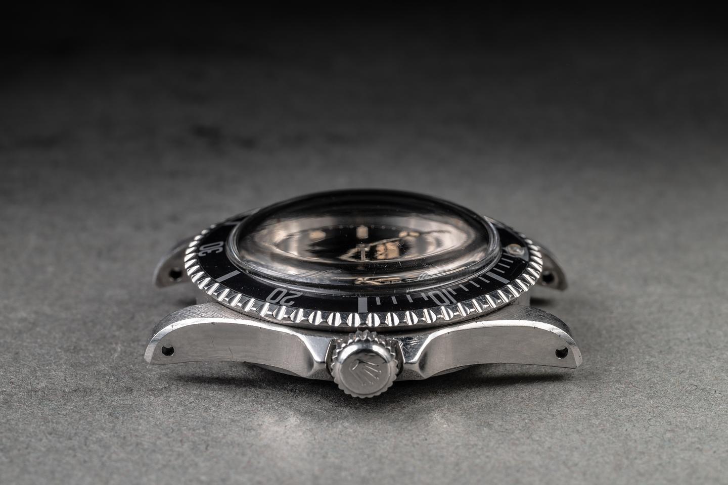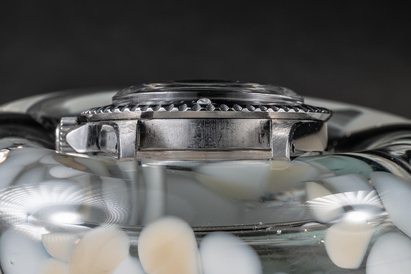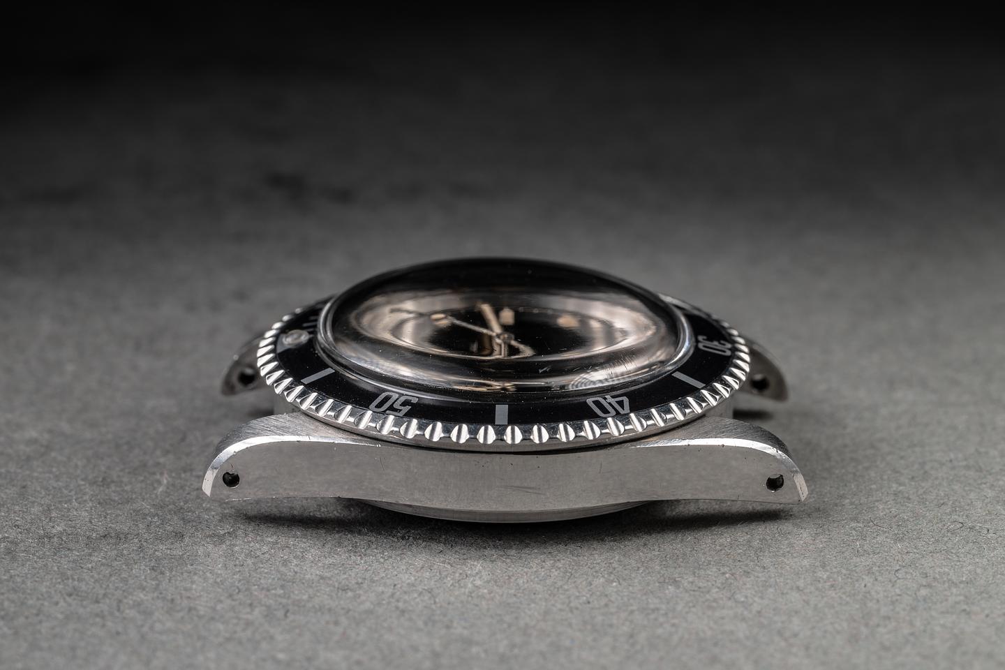 Case: The pointed crown guard case is excellent, showing wide, sharp, prominent bevels and only light wear from use. The bezel insert is also in excellent condition and has aged to a charcoal grey tone, showing only light wear from use.
