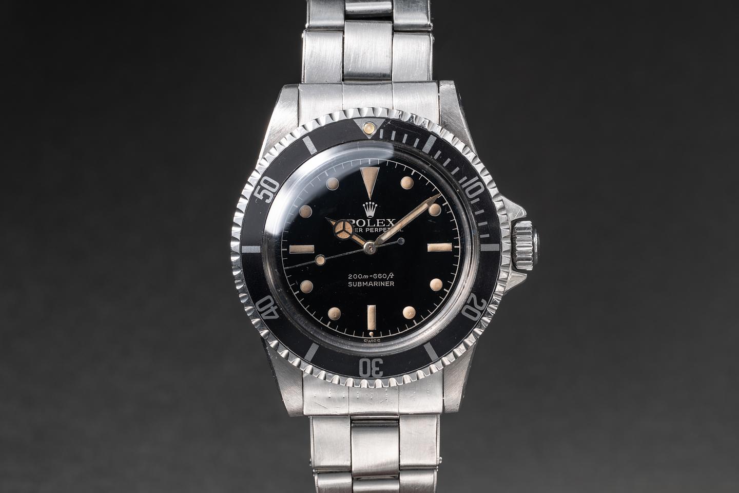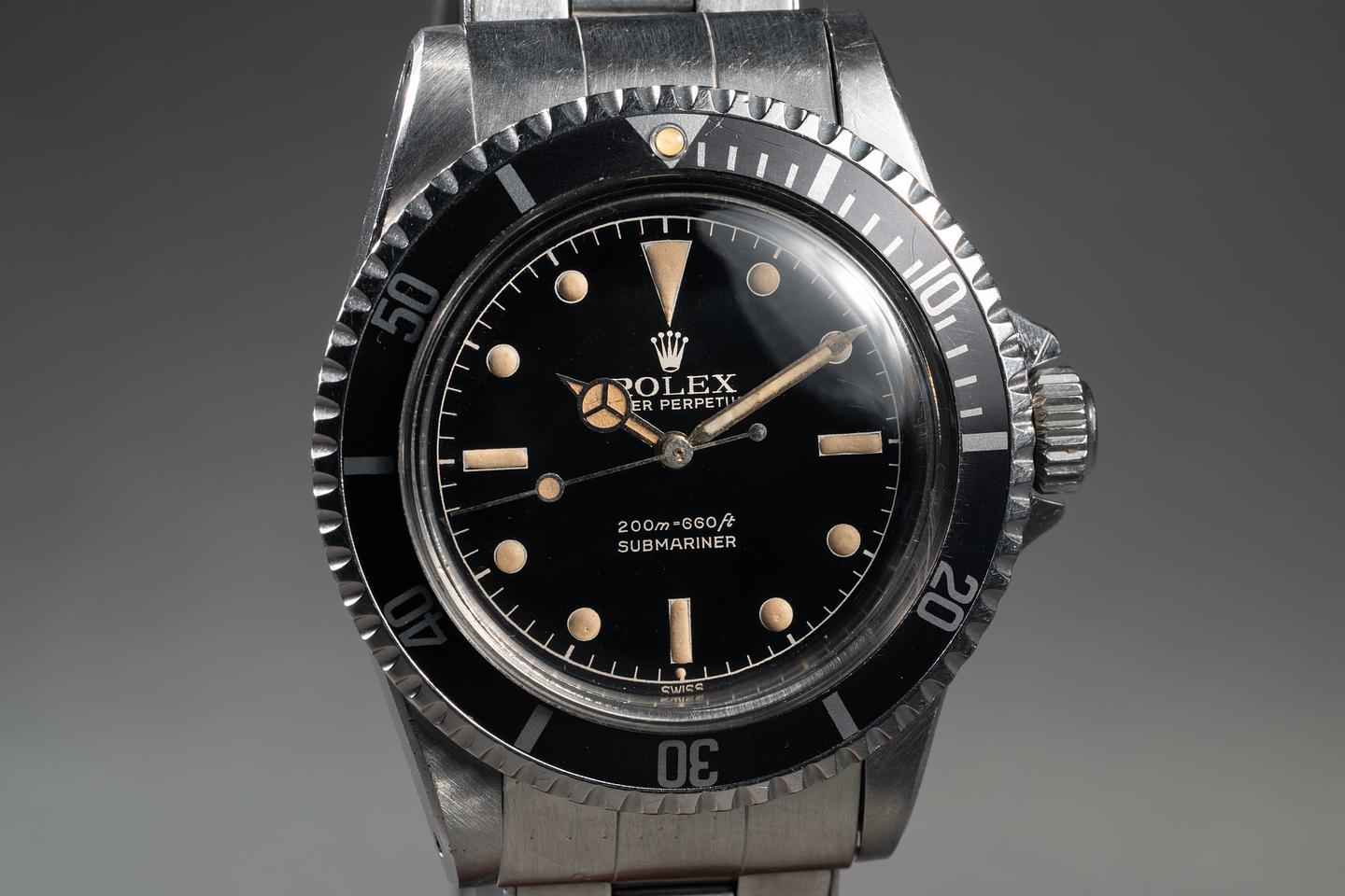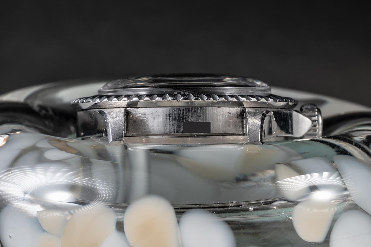 Case: The pointed crown guard case is excellent, showing wide, sharp, prominent bevels and only light wear from use. The bezel insert is also in excellent condition and has aged to a charcoal grey tone, showing only light wear from use.