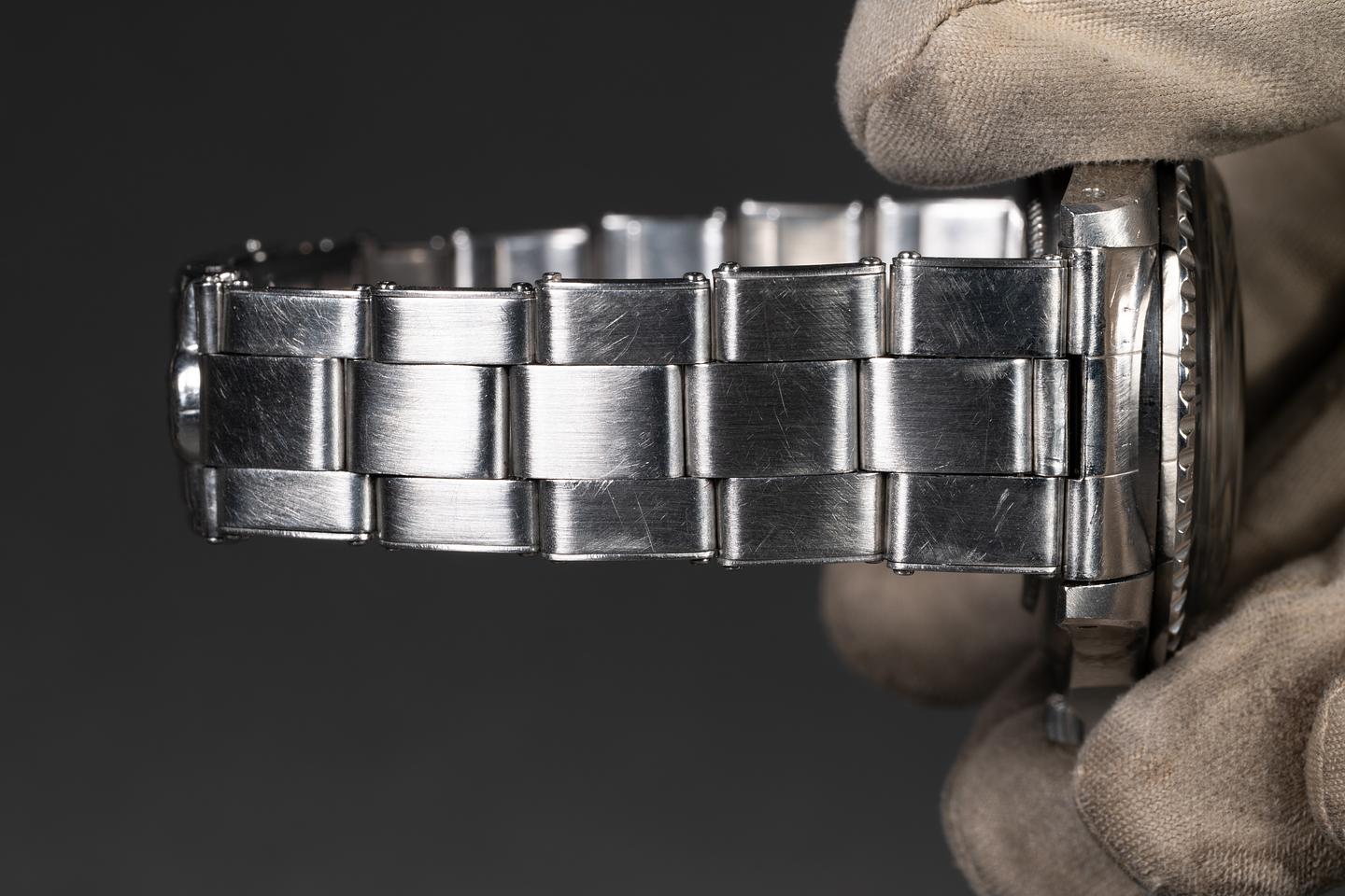 Bracelet: The 11-link USA-made Oyster-flex bracelet is tight excellent condition, showing only very light stretch or sag. The 6 o'clock end link shows some wear from use.