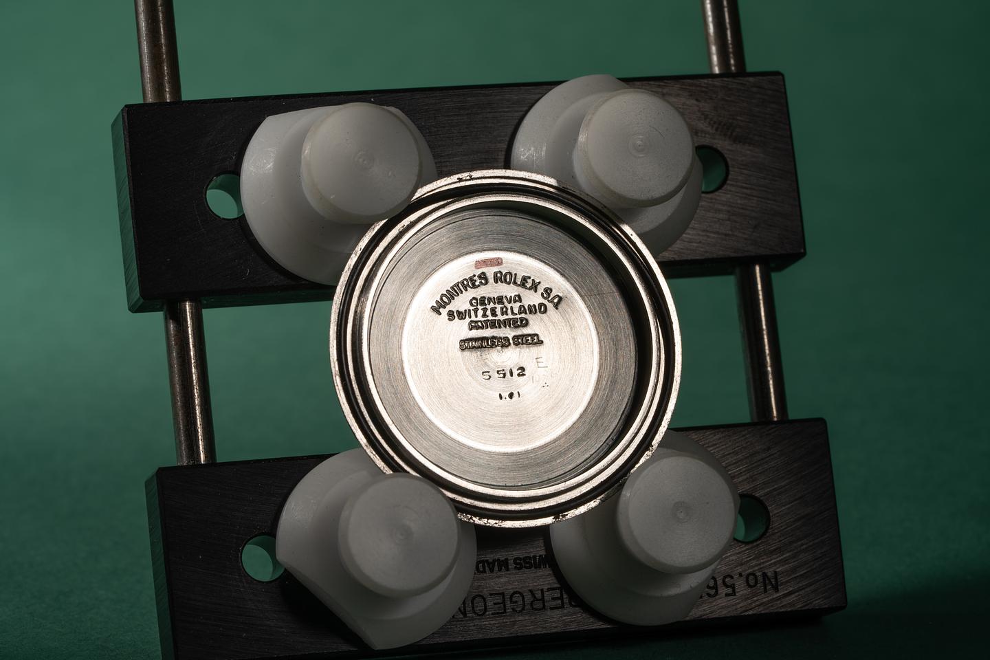Bracelet: The 12 link oyster flex bracelet is in excellent condition. The clasp is stamped with a 1960 date code.