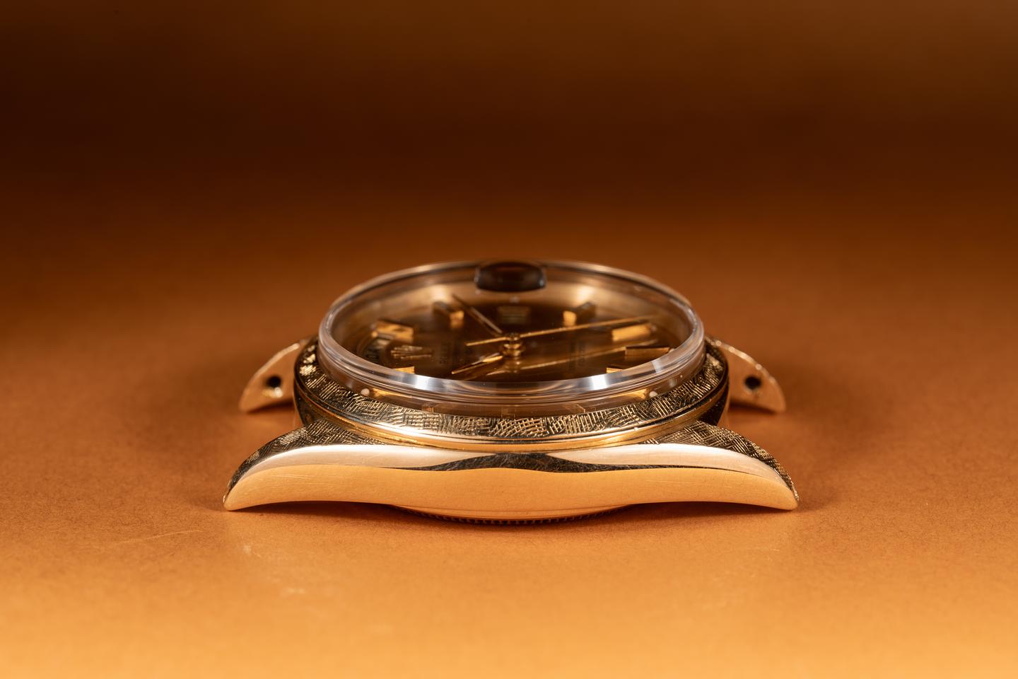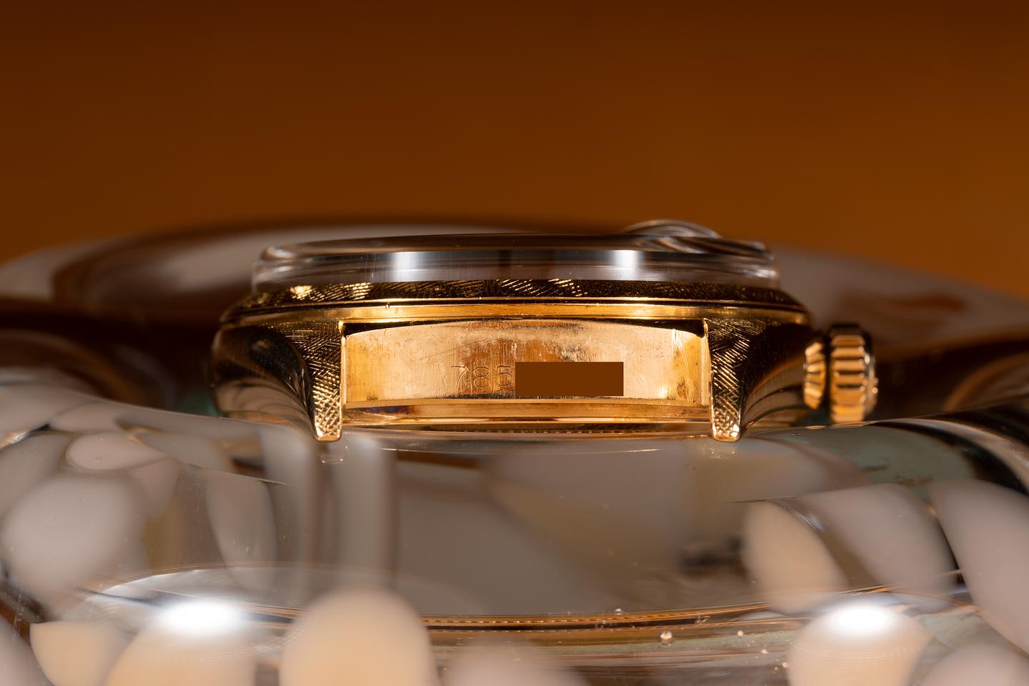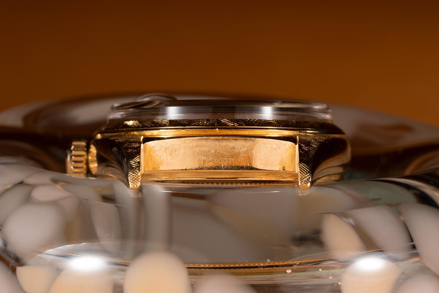 Case: The 18k yellow gold Florentine case is excellent showing only very light wear from use. The 18k yellow gold Florentine bezel is also in excellent condition showing only light wear from use.