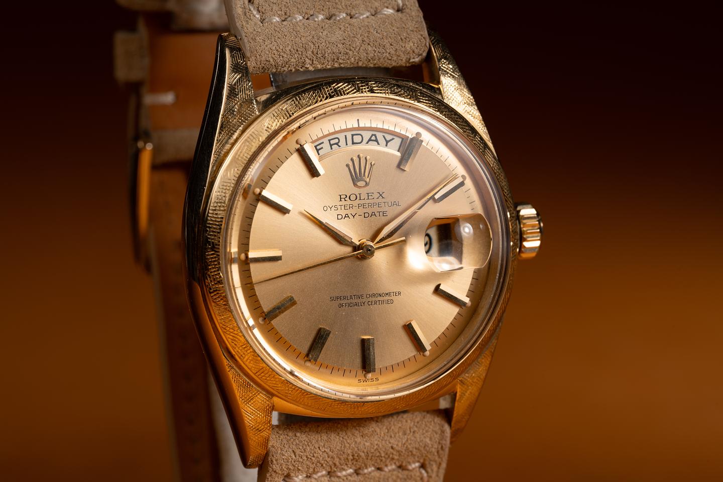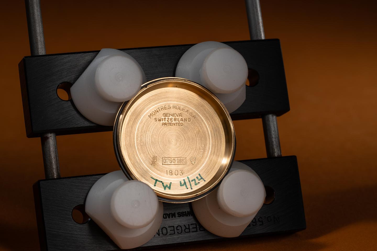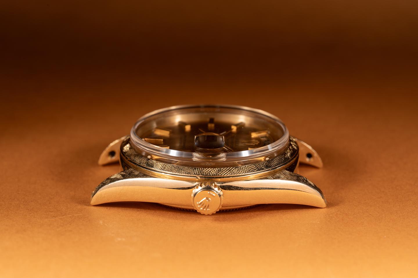 Case: The 18k yellow gold Florentine case is excellent showing only very light wear from use. The 18k yellow gold Florentine bezel is also in excellent condition showing only light wear from use.