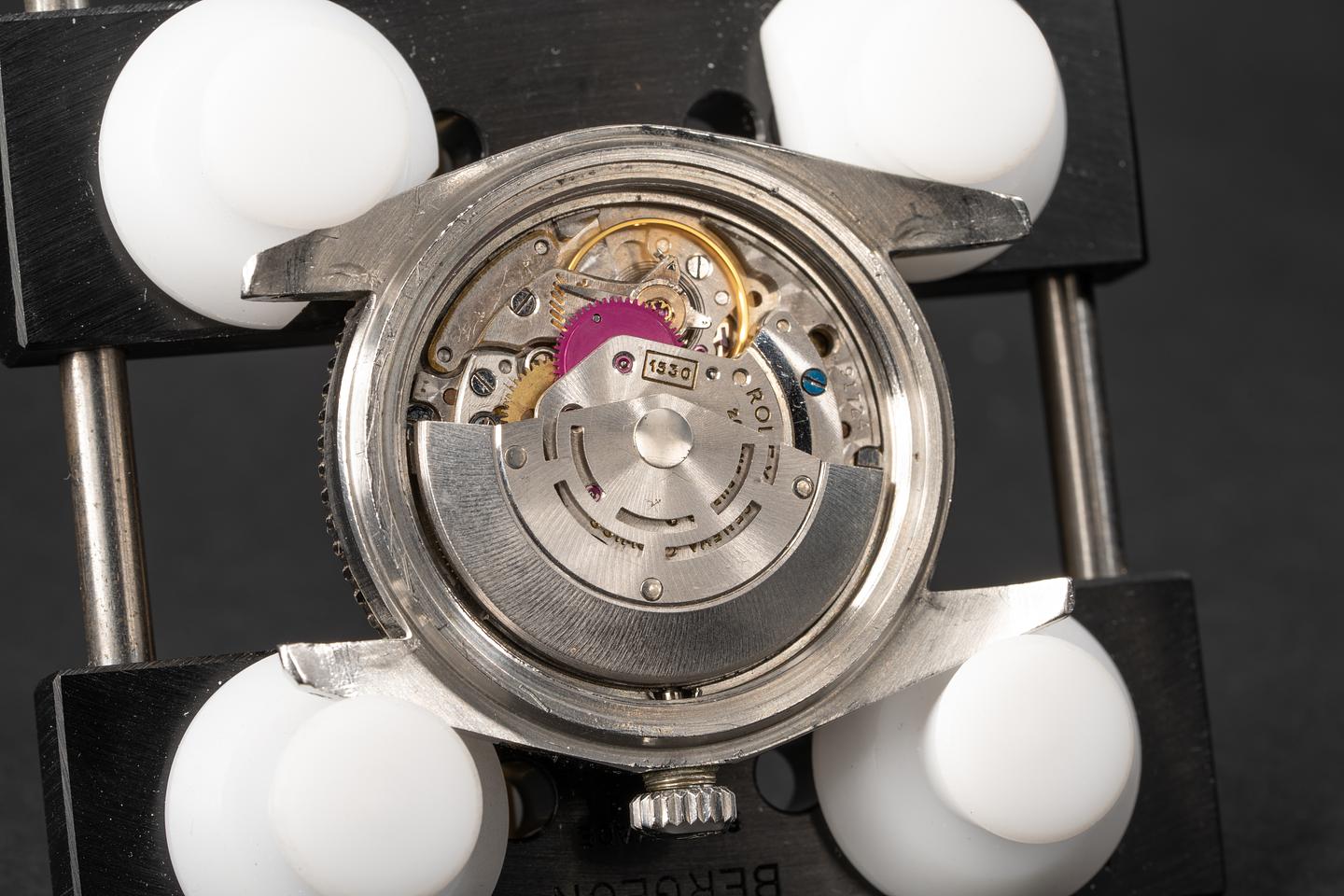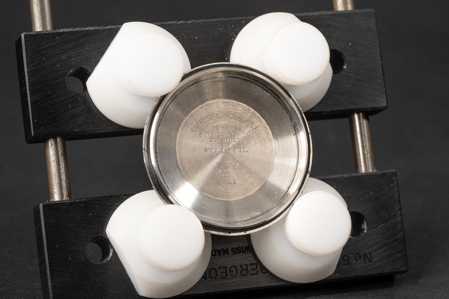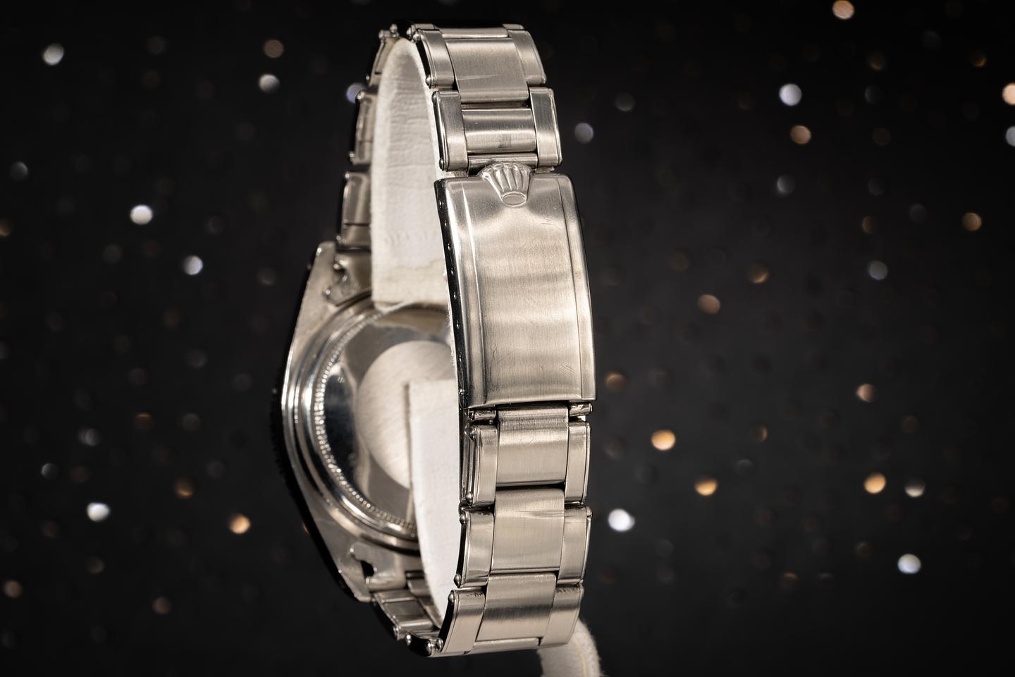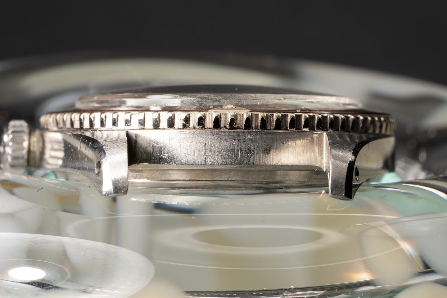 Bracelet: The 11 link Swiss rivet bracelet is excellent showing average stretch for its age. The clasp is stamped with a 1965 date code.