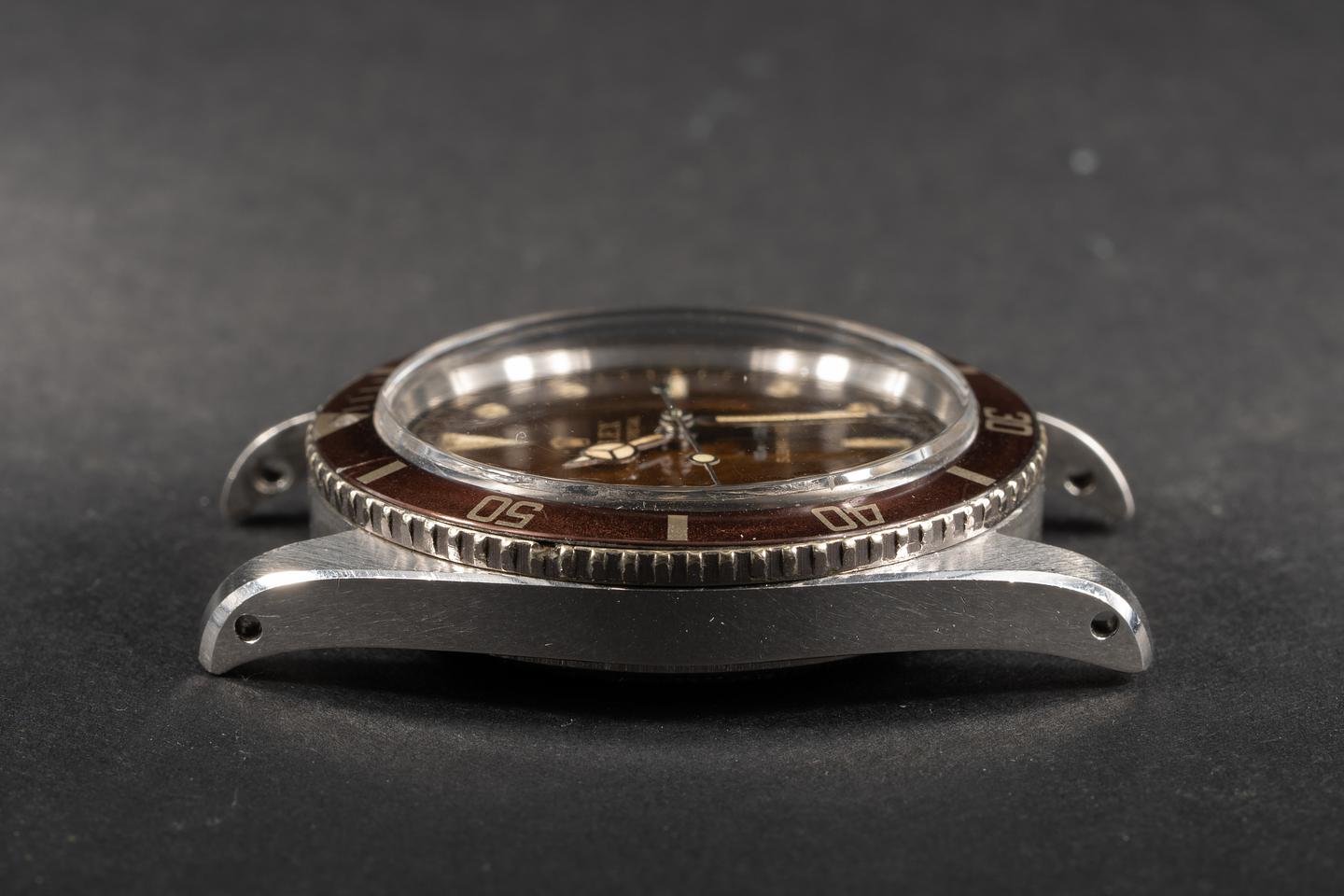 Notes: As tropical as it gets. The deep glossy amber dial, the subtle lavender hues of the chocolatey bezel insert, the fat sharp bevels on the no crown guard case. A watch that's truly worth coming in on a Sunday to photograph and post up on the site for you all to enjoy.