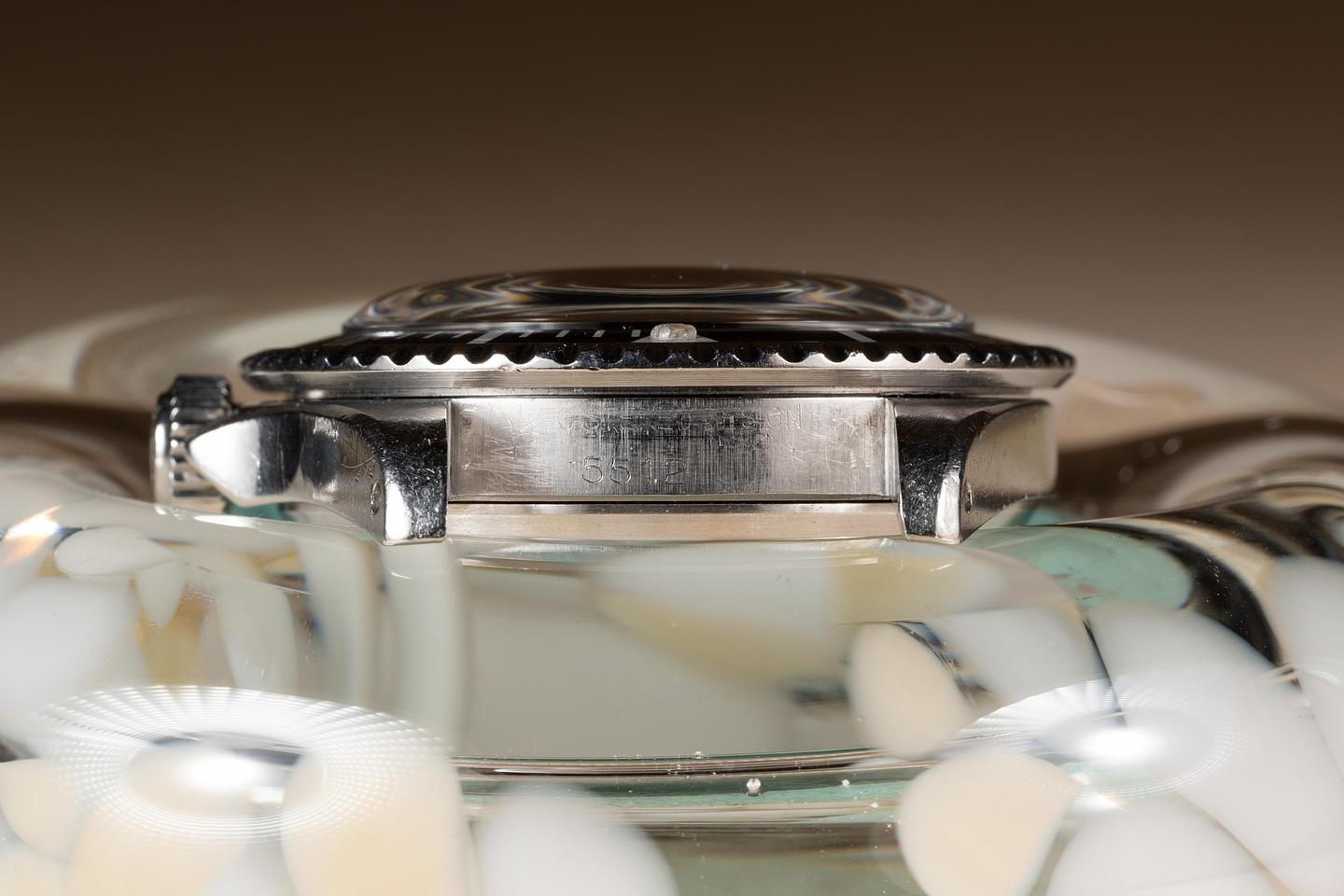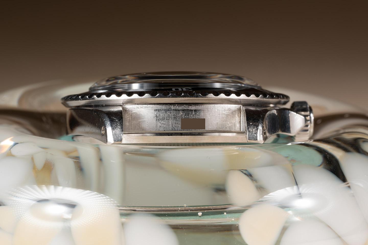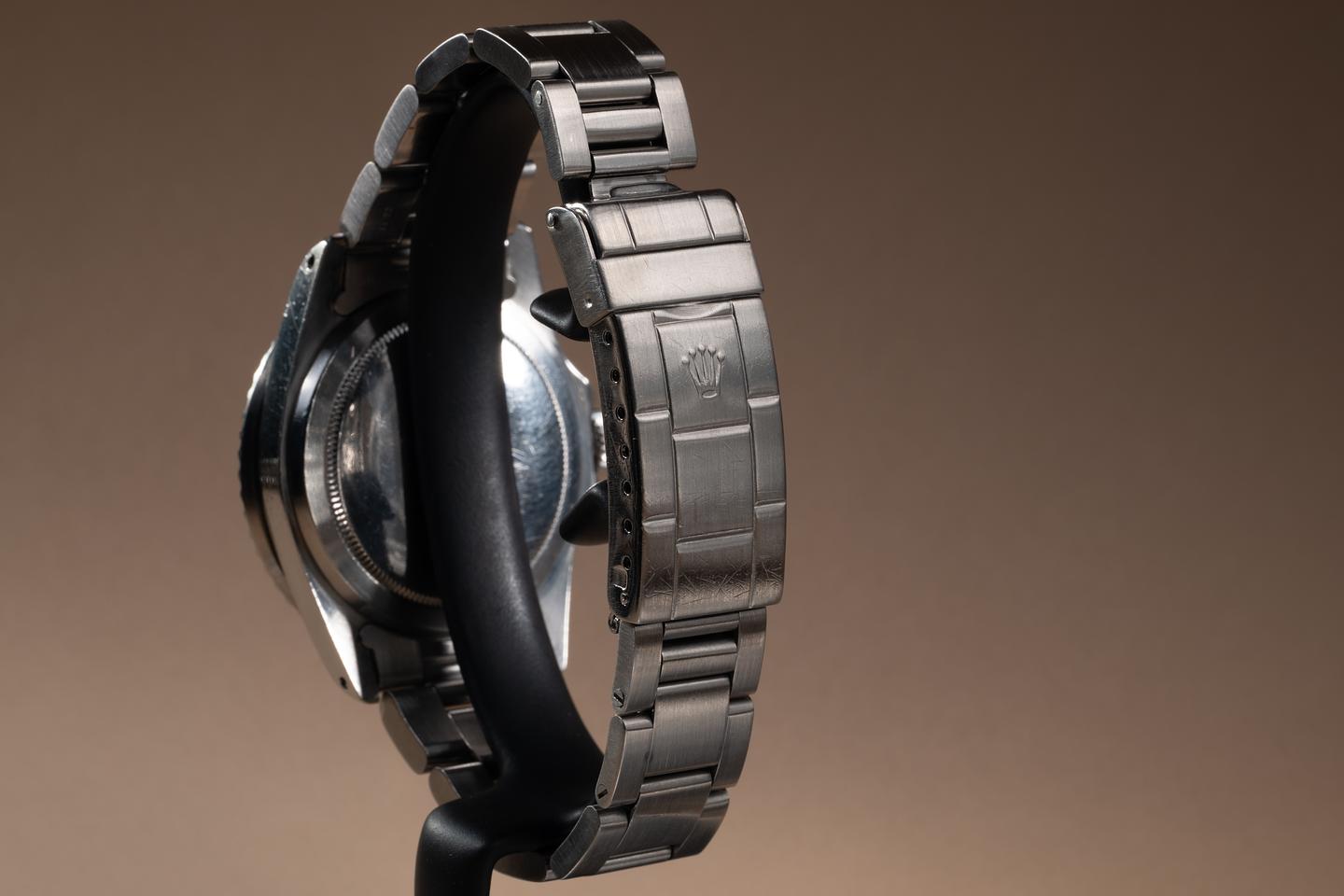 Case: The previously polished case is excellent showing prominent bevels and only light wear from use. The black bezel insert is also in excellent condition showing only light wear from use.