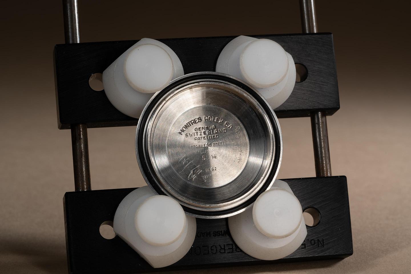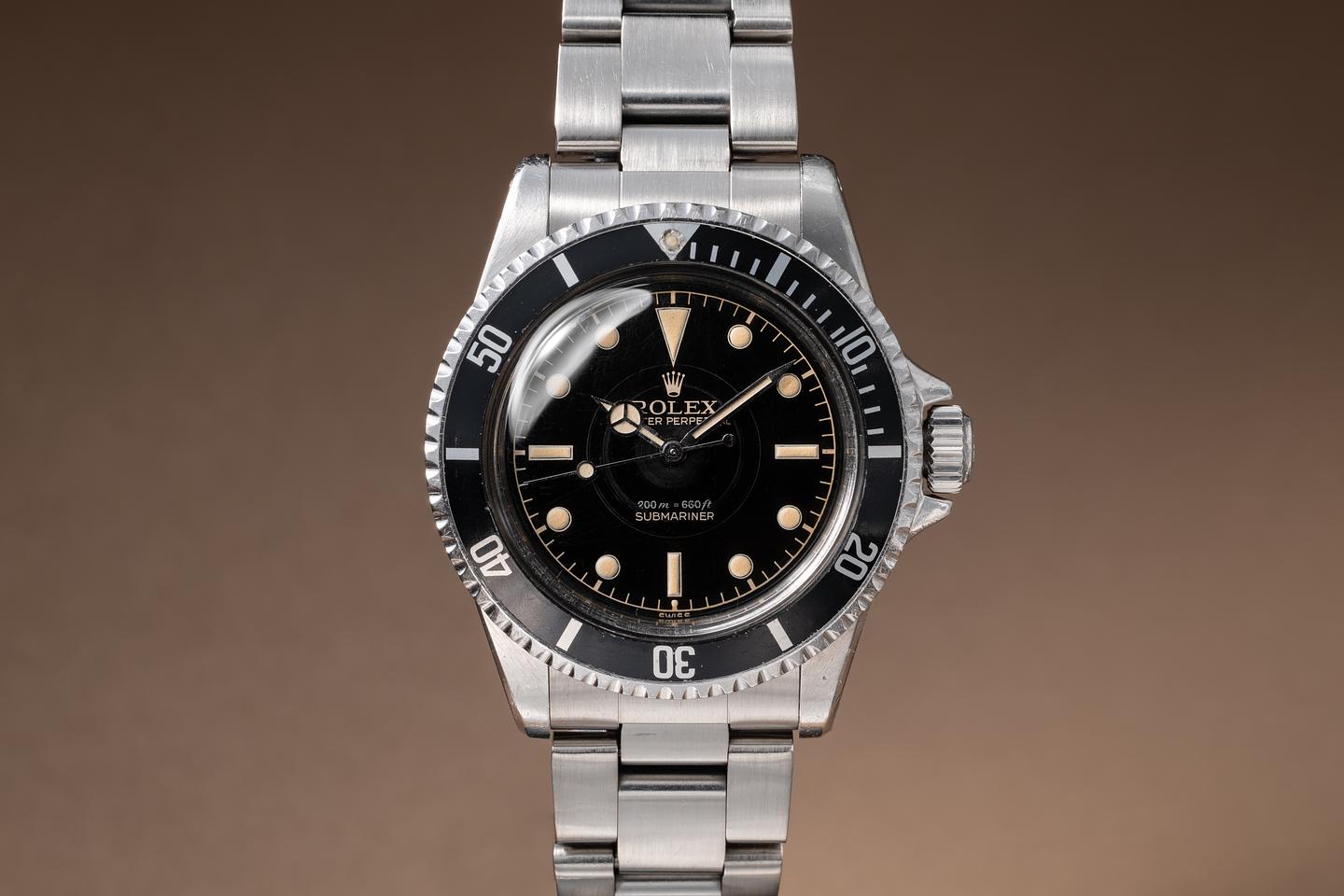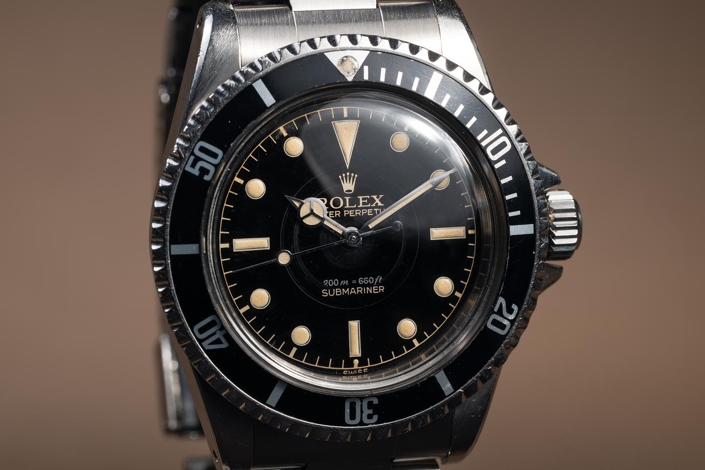 Case: The previously polished case is excellent showing prominent bevels and only light wear from use. The black bezel insert is also in excellent condition showing only light wear from use.