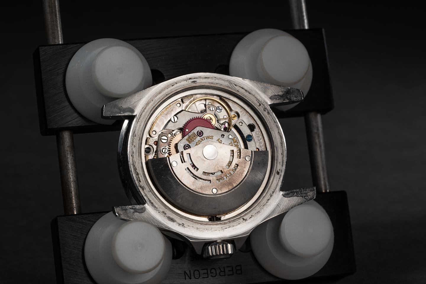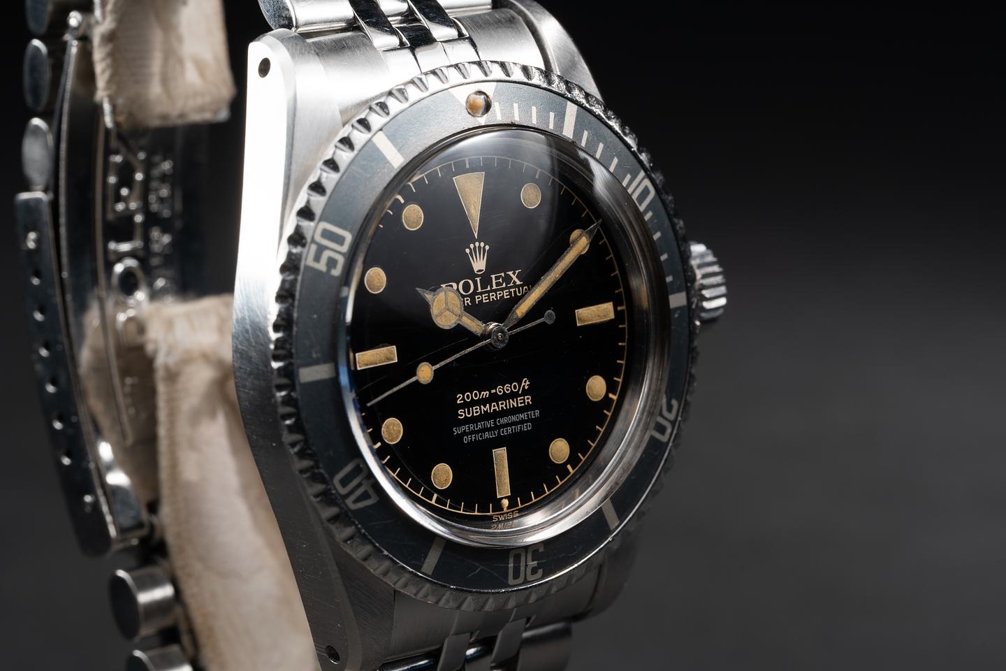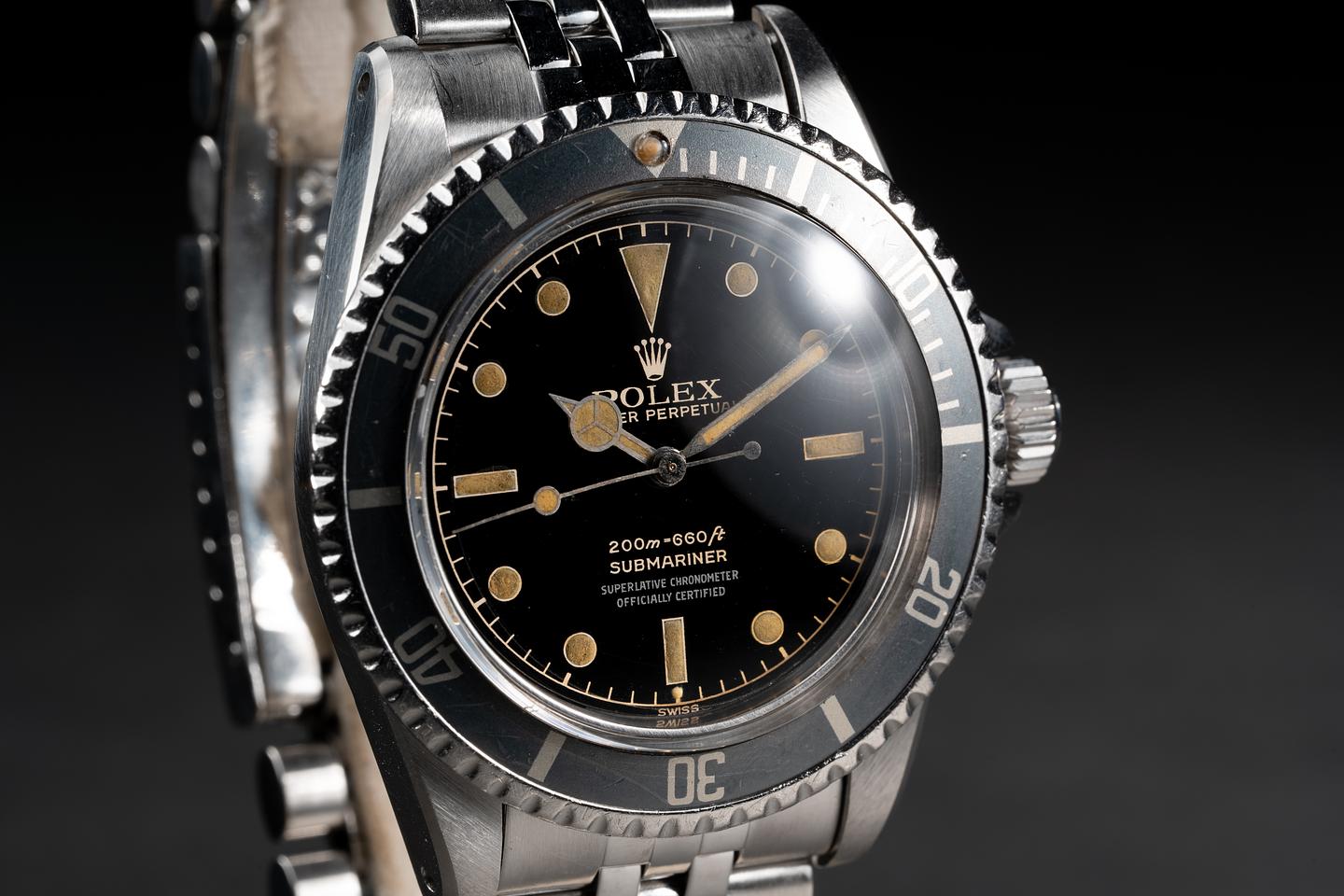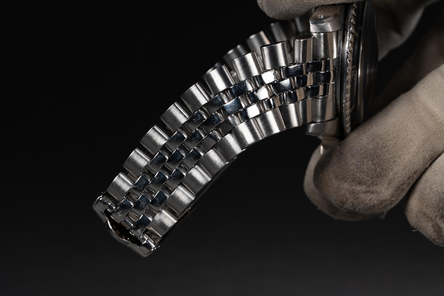 Case: The case is excellent showing wide, sharp, prominent bevels and only very light wear. The bezel insert is also in excellent condition and has aged to a light grey/silver tone.