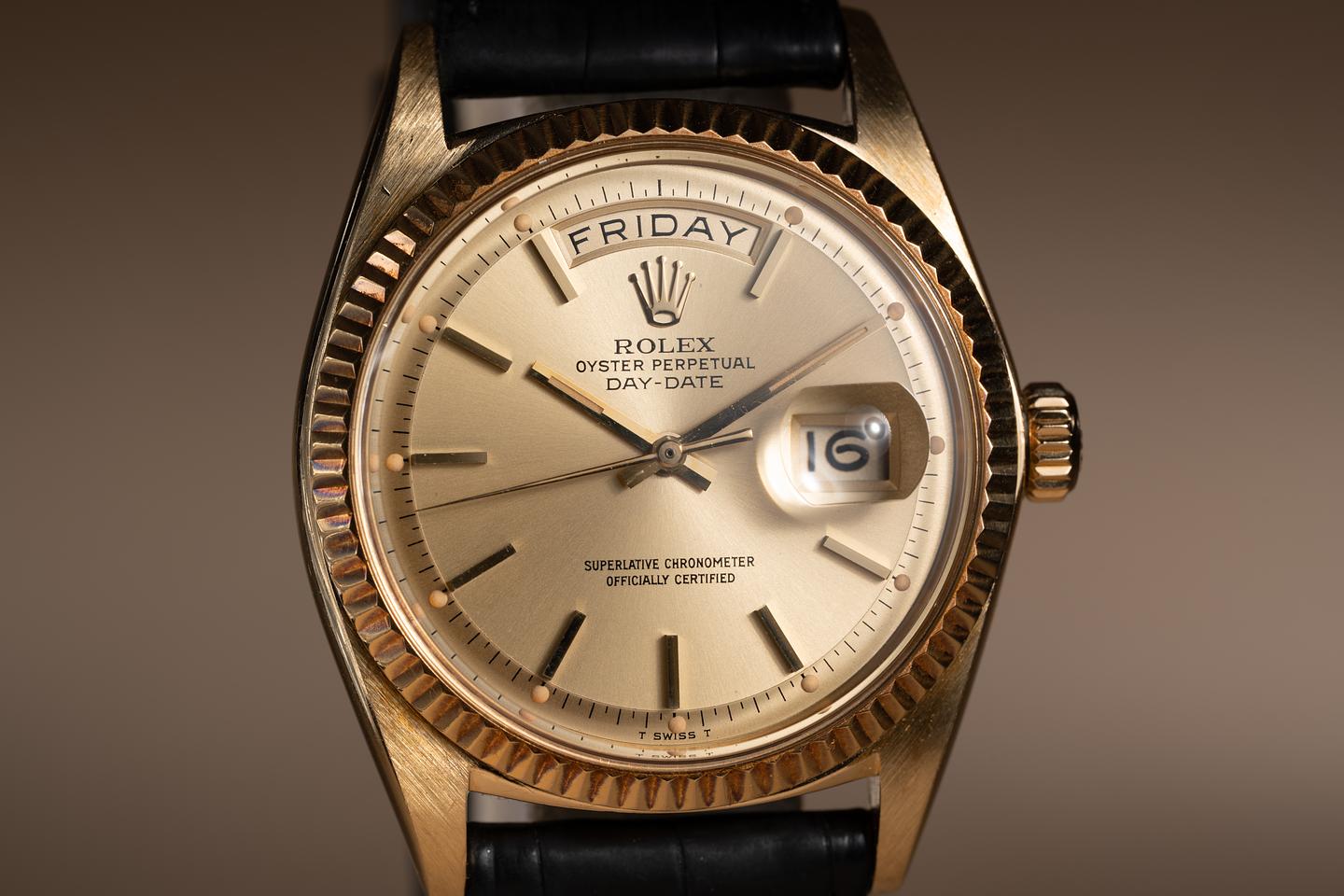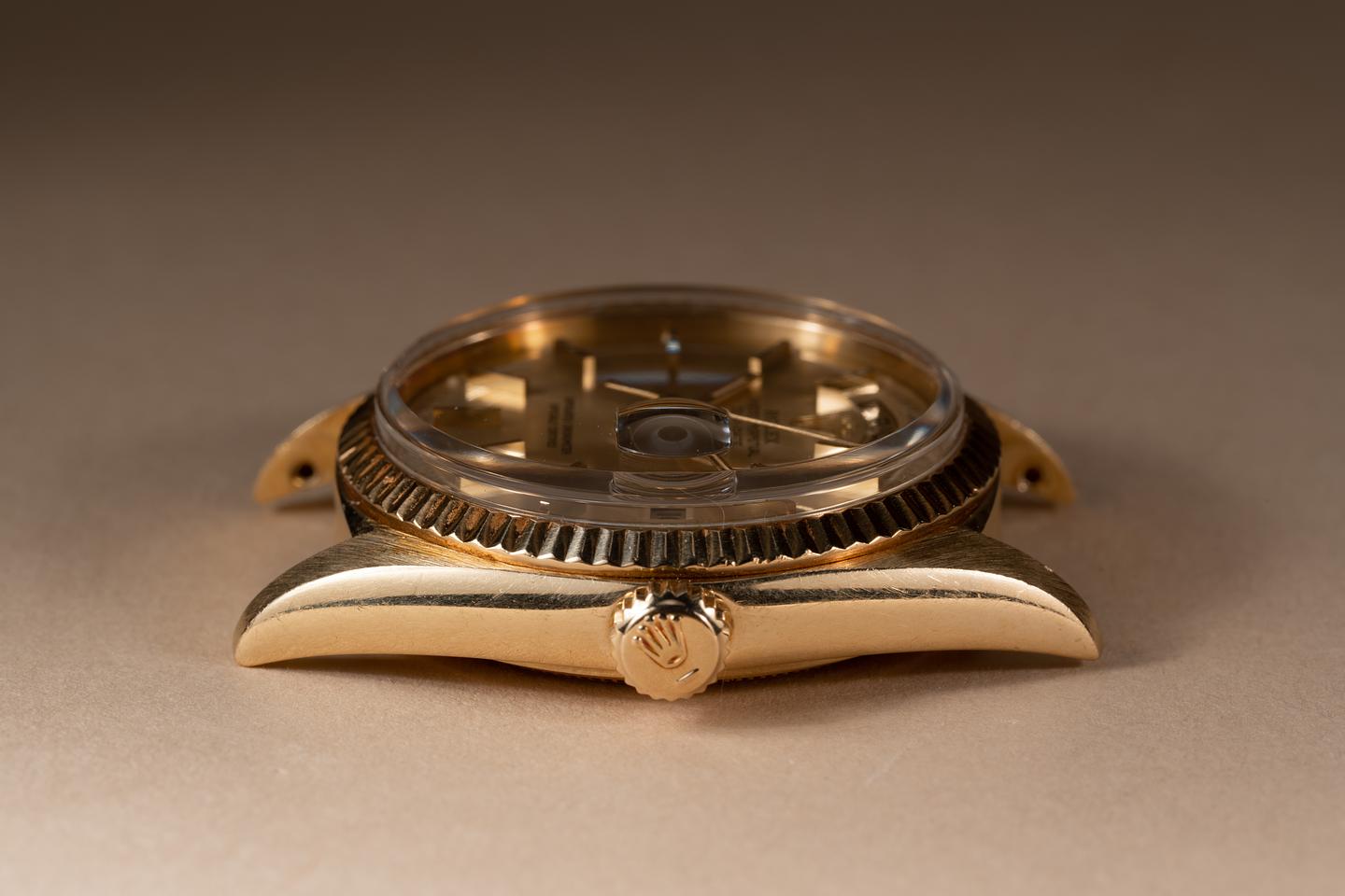 Case: The previously polished 18k yellow gold case is excellent showing some light wear from use. The sharp 18k yellow gold fluted bezel is also in excellent condition showing only light wear from use.